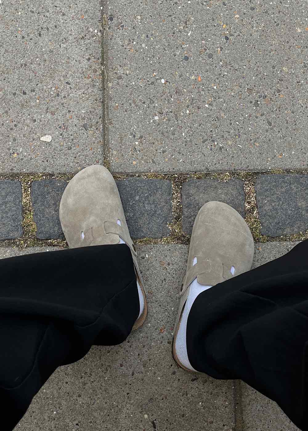 Boston er en lukket sandal i farven Taupe. Modellen har en blød fodseng og er designet med en flad hæl, hvilket gør den velegnet til hverdagsbrug og som hjemmesko.