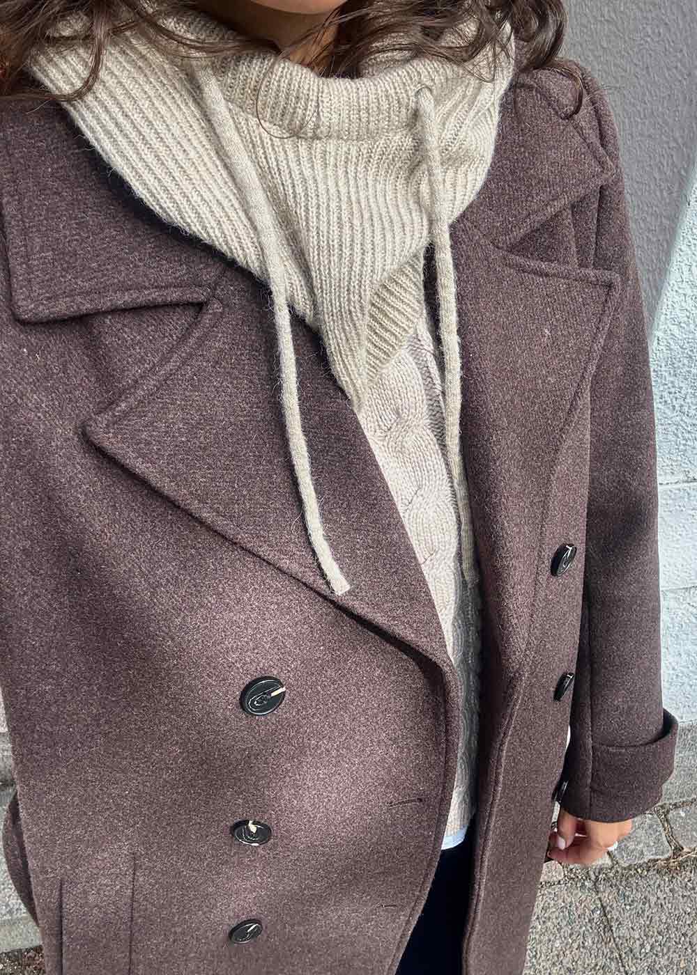 Denne balaclava er fremstillet i en lækker uld- og alpacablanding, der sikrer varme og komfort. Den er et stilfuldt og funktionelt tilbehør, som fuldender dit look i de kolde måneder.