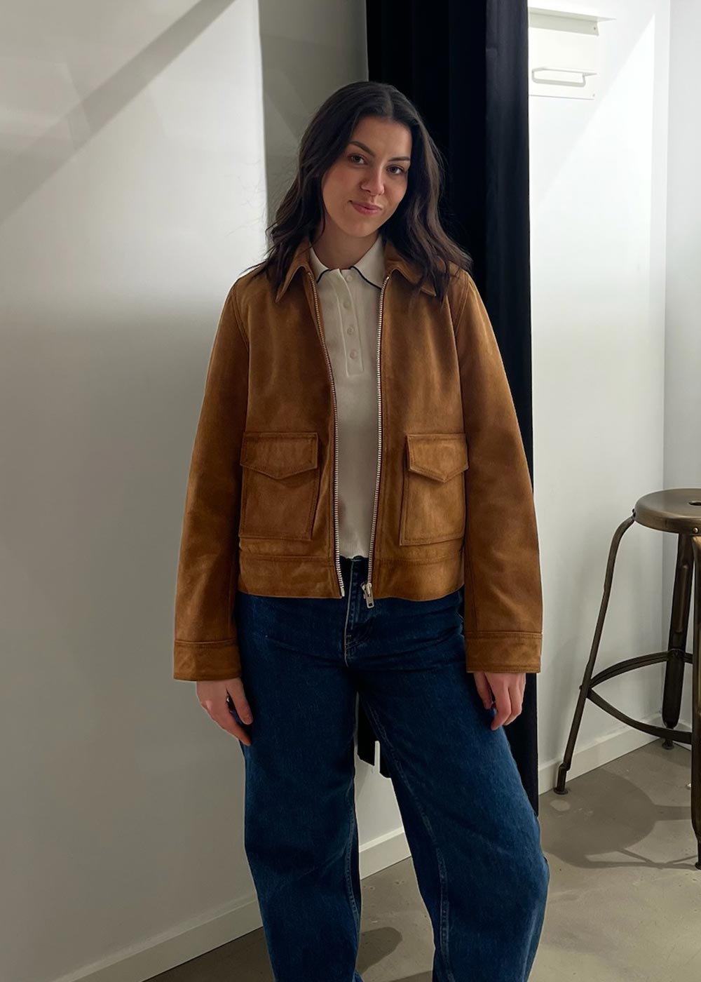 - Kort jakke i ruskind med vintagelook