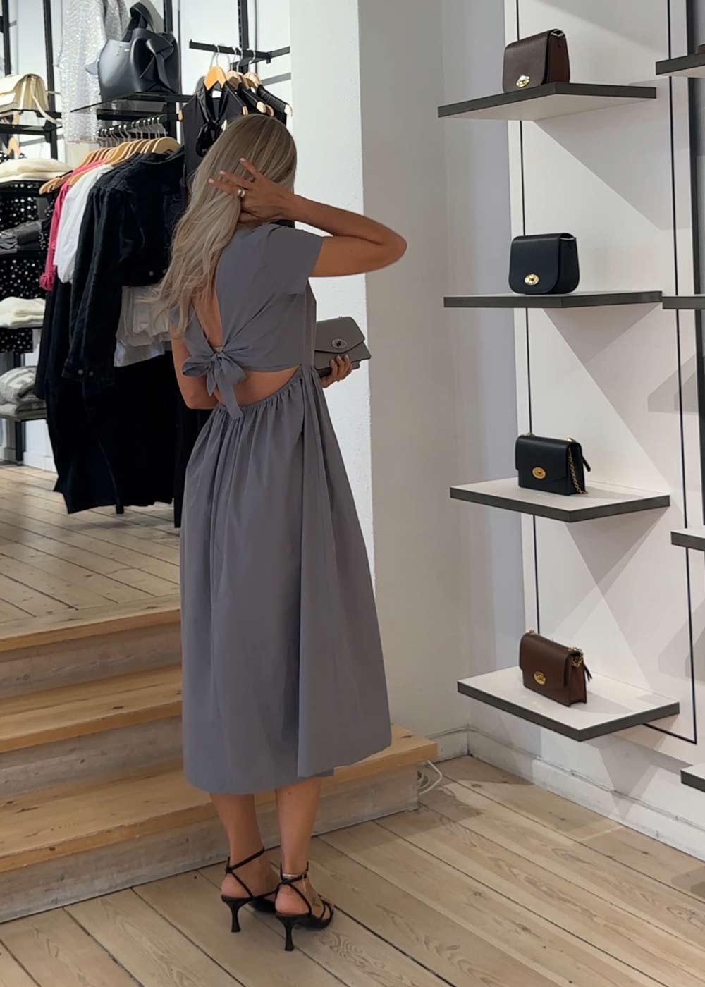Denne kjole fremhæver figuren med sin tætsiddende overdel og lette skørt. Den er fremstillet i en behagelig bomuldsblanding og er et oplagt valg til sæsonens fester og formelle begivenheder.