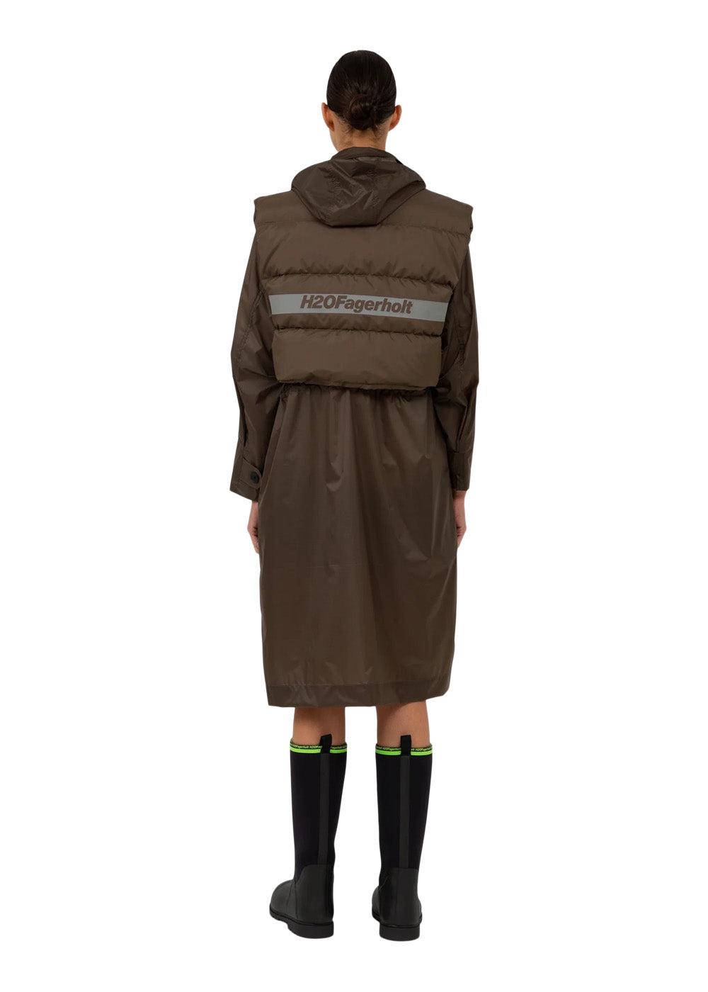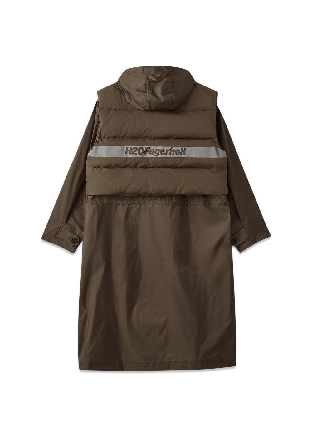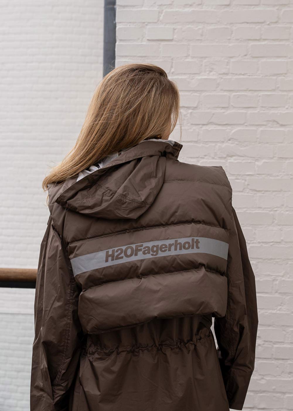 Rain Coat fra H2O Fagerholt er en lækker regnjakke med aftagelig vest så den kan bruges både i køligere og varmere vejr. Regnjakken har aftagelig hætte, reflekslinje med logo bagpå og er nem at pakke sammen så den ikke fylder noget. Regnjakken har desuden 2-vejs lynlås, snøre i taljen og tapede sømme ved skuldrene.