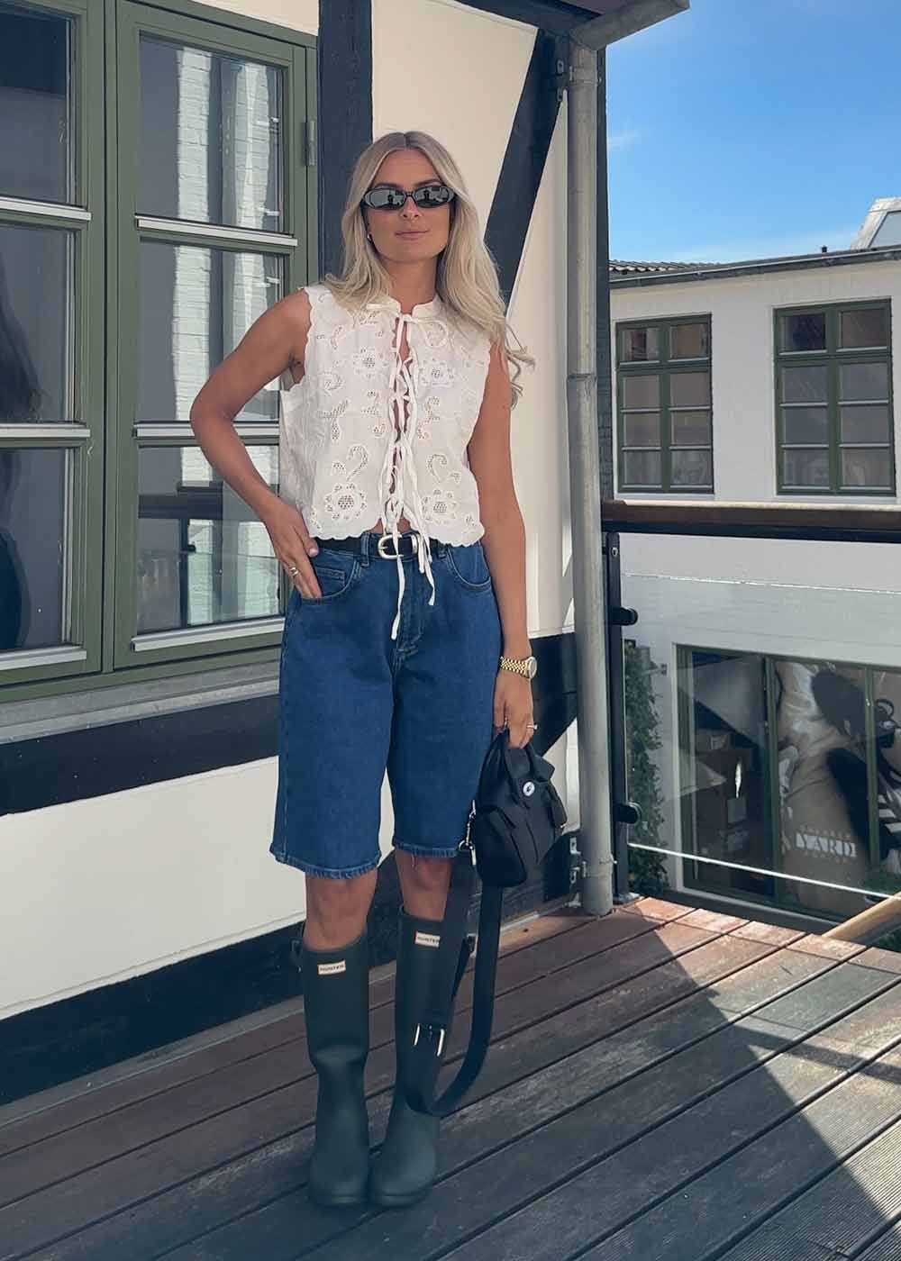 - Lange denimshorts med vidde i benene
