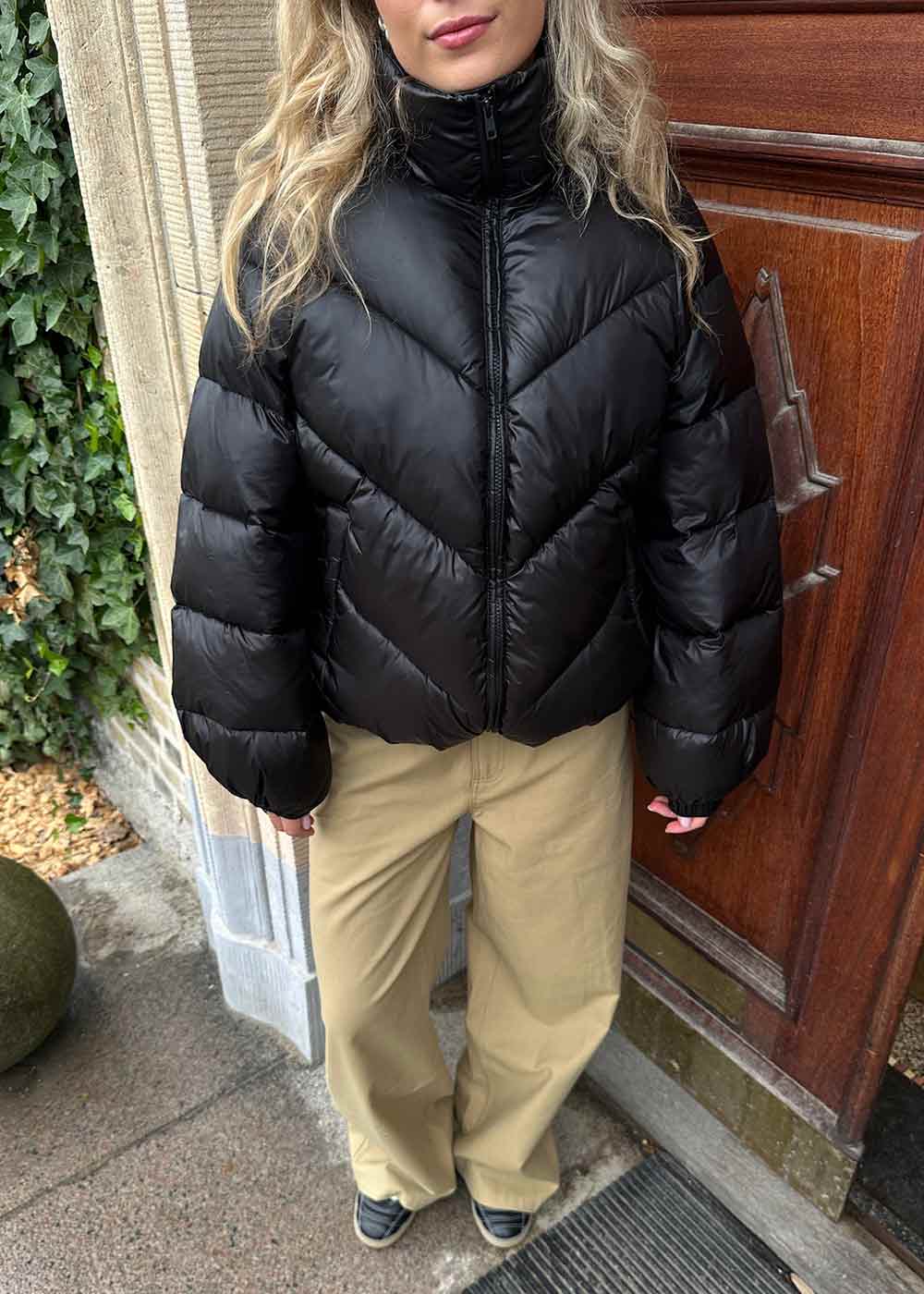 Denne jakke kombinerer et urbant design med praktiske detaljer. Den er fremstillet af genanvendte materialer og har en boxy pasform, der er ideel til hverdagsbrug og holder dig varm med stil.