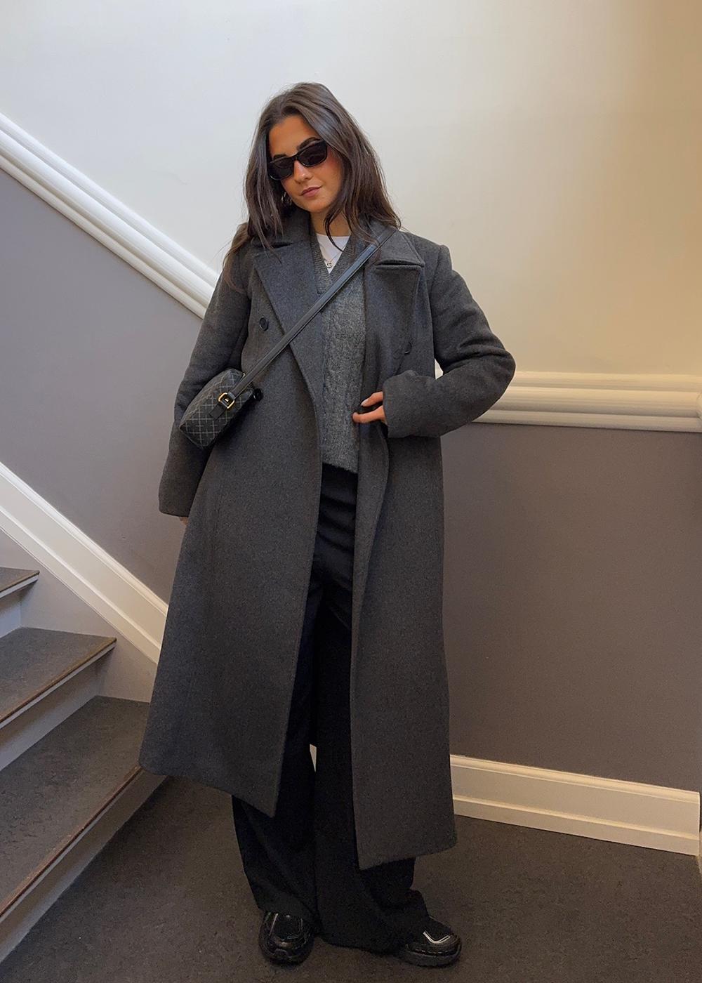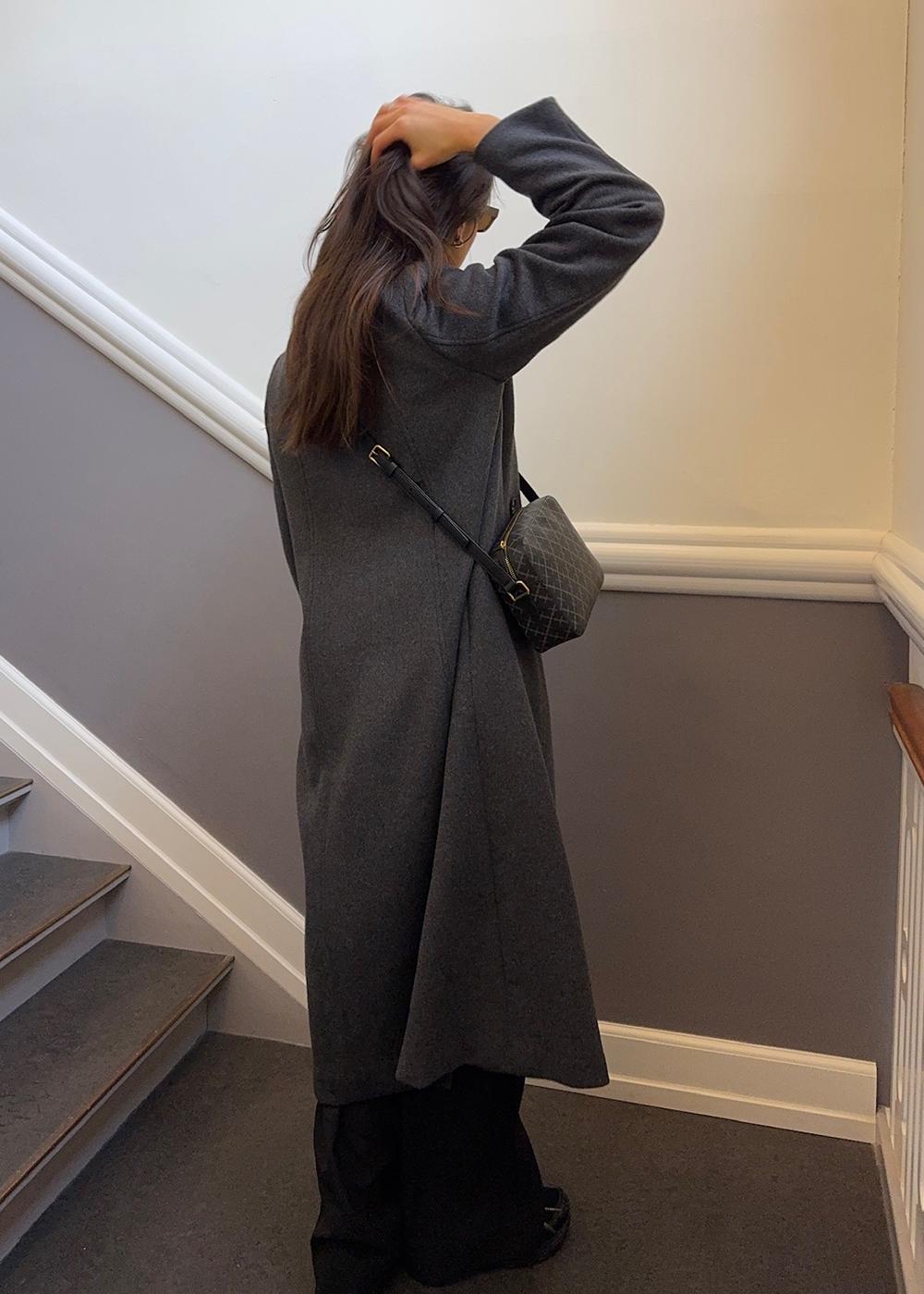 Denne ensfarvede frakke kombinerer et formelt udtryk med en behagelig pasform. Den klassiske skjortekrave og de praktiske lommer fuldender designet, hvilket gør den til et tidløst valg i garderoben.