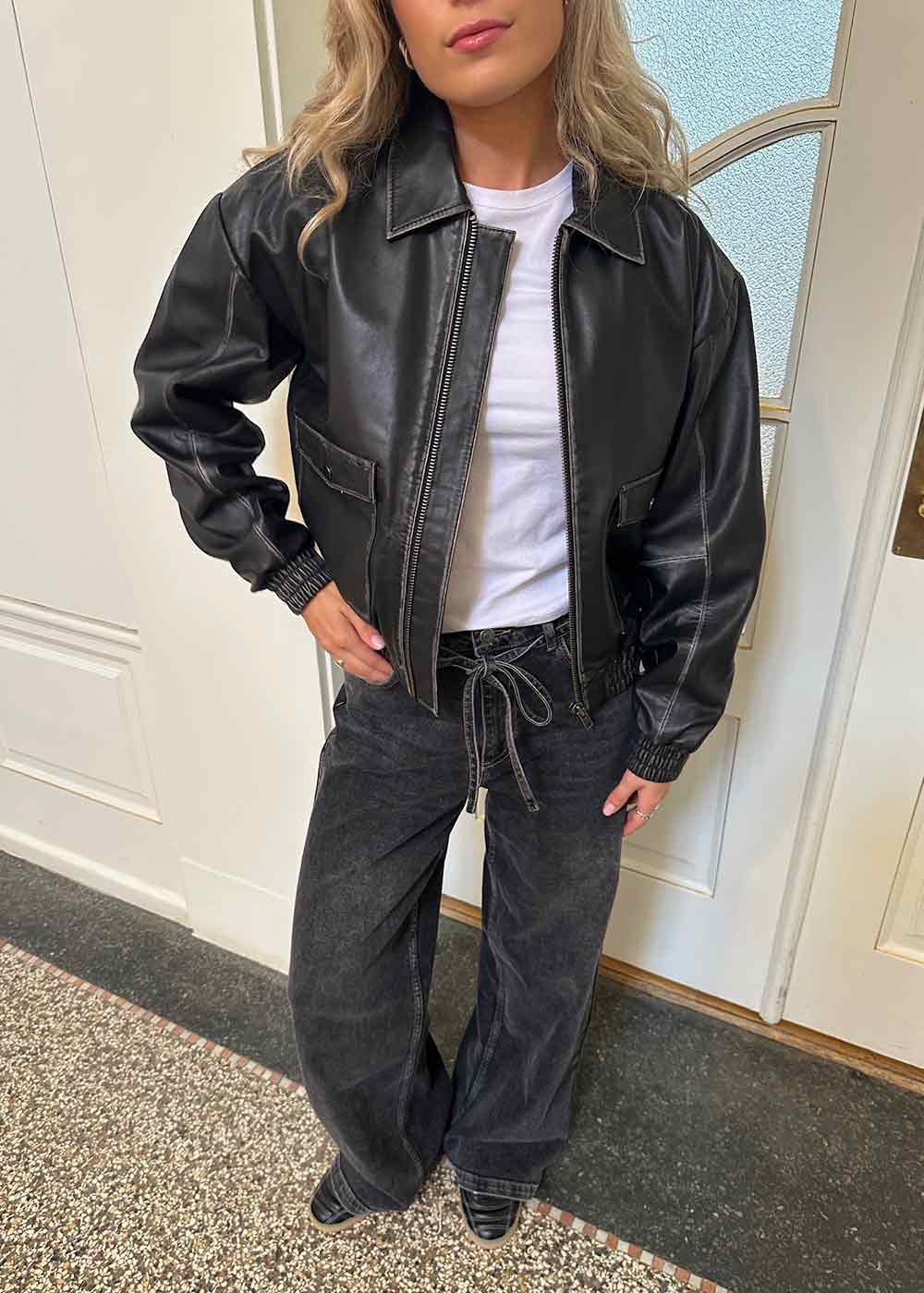 - Klassisk skjortekrave og kort længde.