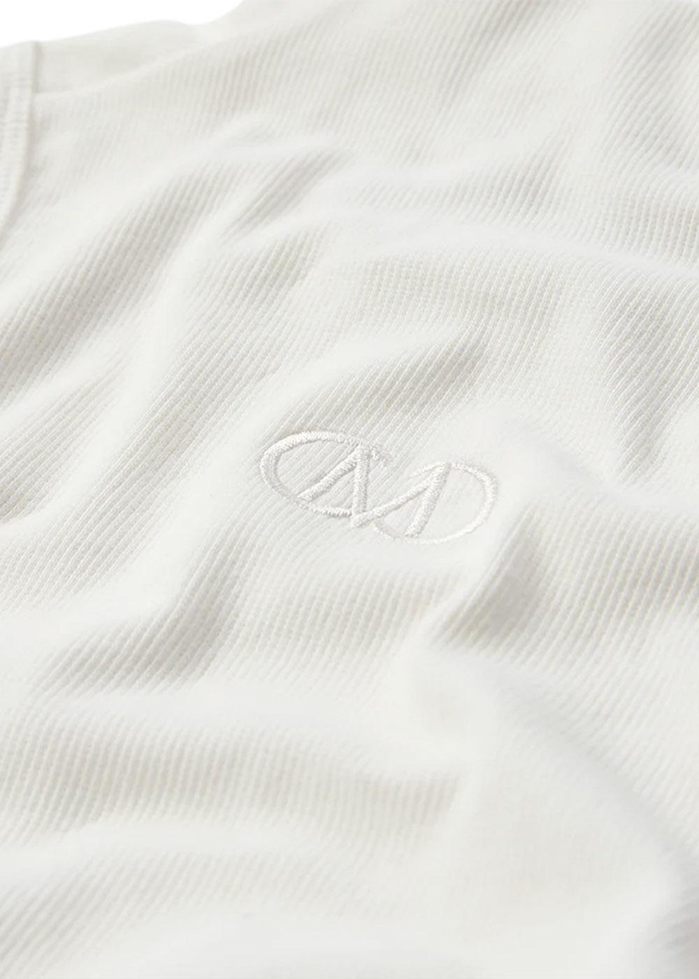 Oplev den klassiske elegance med denne top fra Copenhagen Muse. Med sin høje hals og slim pasform, kombinerer den broderi og strik i en tidløs hvid og creme farve, perfekt til hverdagsbrug.