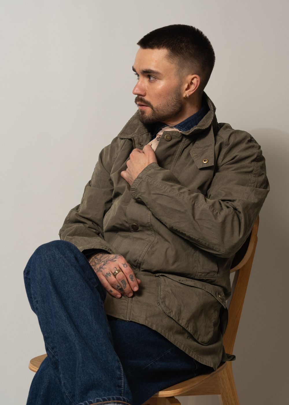 Opdag Barbour Ashby Casual Jacket, en klassisk overgangsjakke i en stilfuld olivengrøn farve. Jakken er fremstillet i 100% åndbar bomuld, hvilket sikrer komfort og et tidløst design til hverdagsbrug.