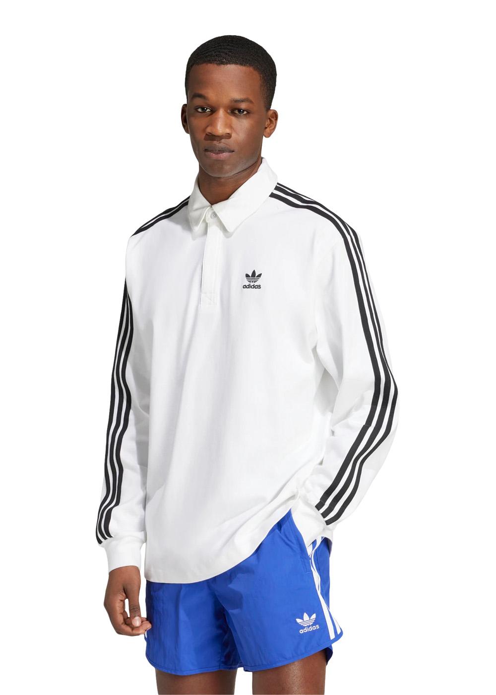 Oplev komfort og stil med denne Adidas Originals rugby polo. Med en regular pasform og drop-shoulder ærmer, er den ideel til hverdagsbrug. Den stribede, hvide og creme farve kombineret med en polo-krave giver et klassisk sporty look.