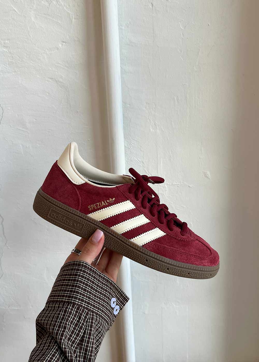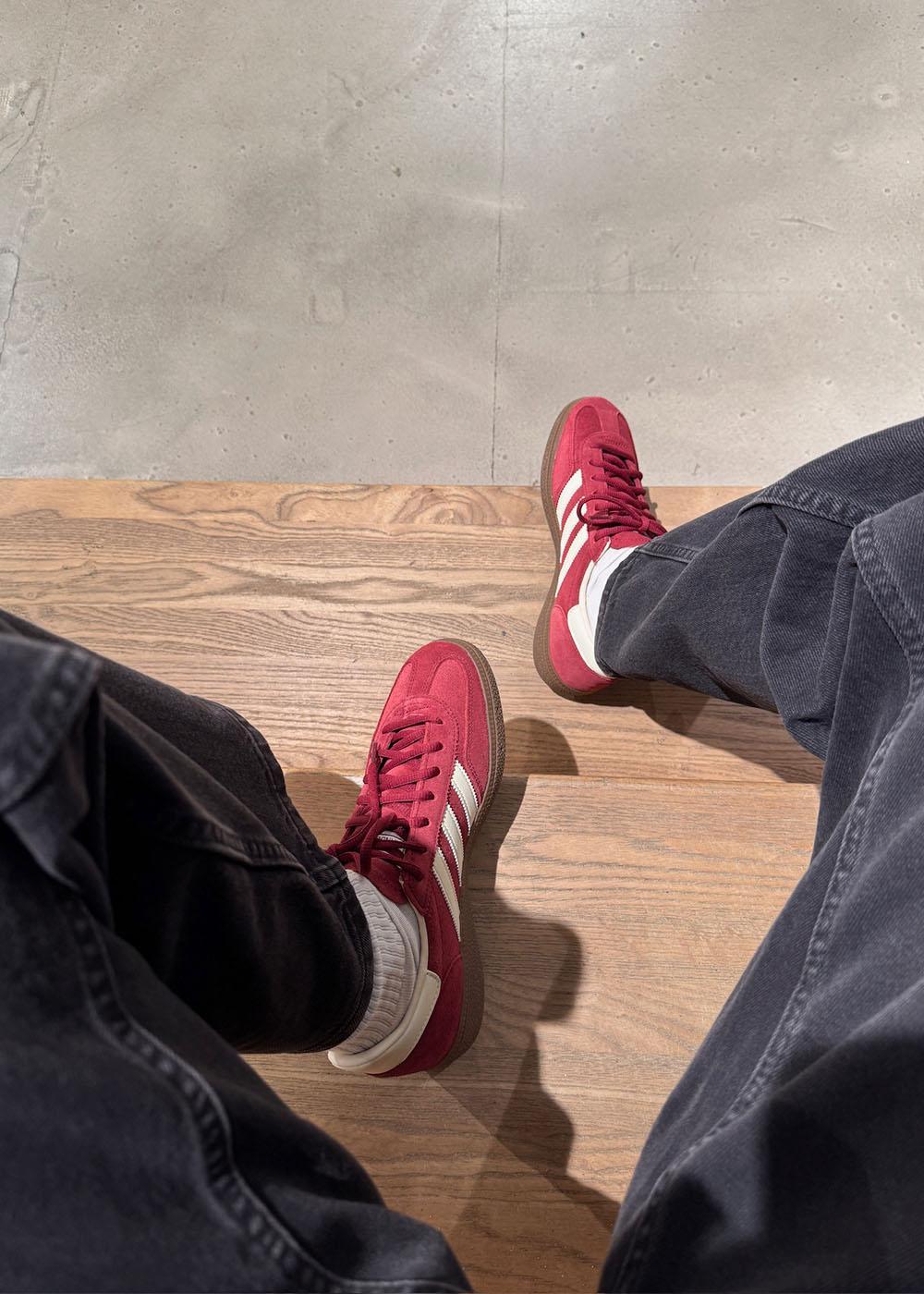 Disse sneakers kombinerer en overdel i ruskind med ikoniske detaljer. Den dybe bordeaux farve og klassiske silhuet gør den til et alsidigt valg, der fuldender ethvert outfit med et strejf af retro-charme.