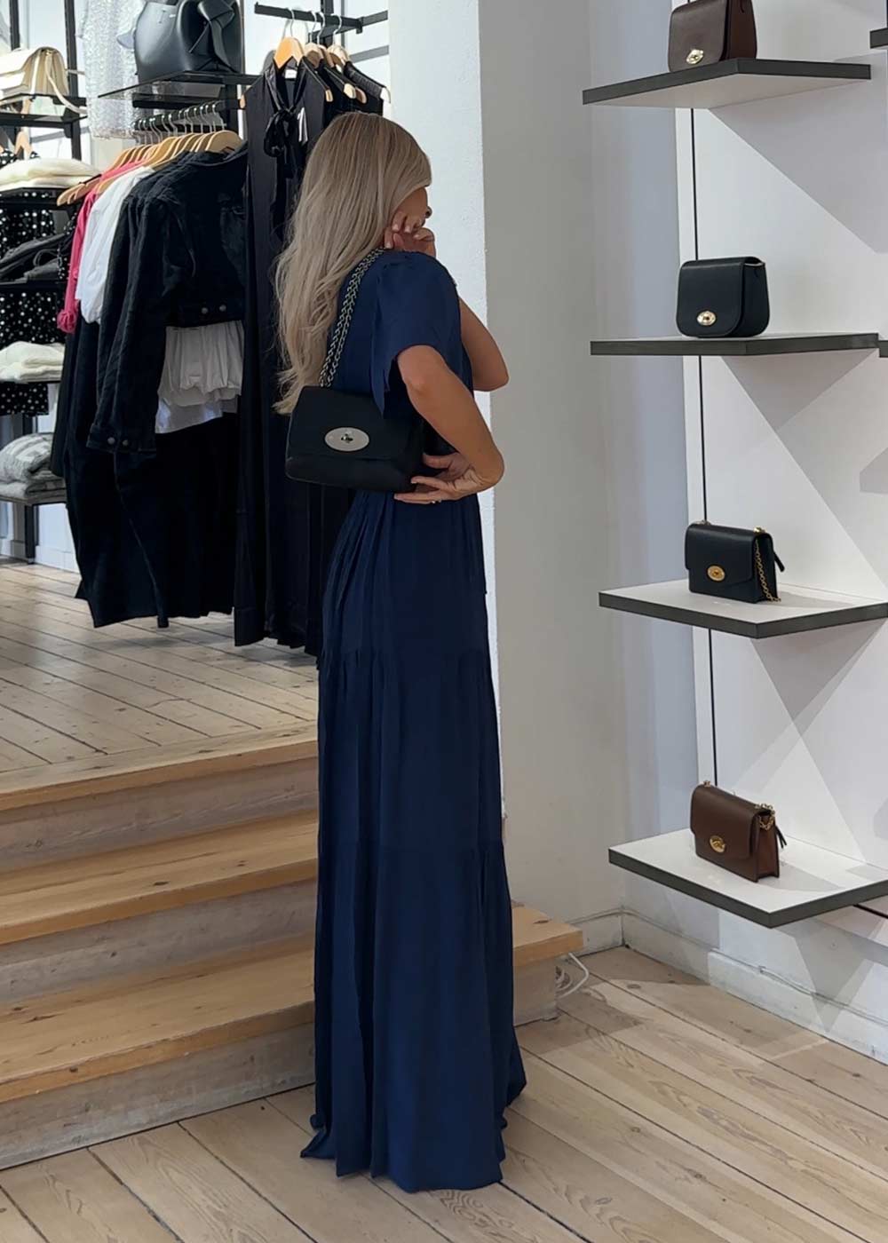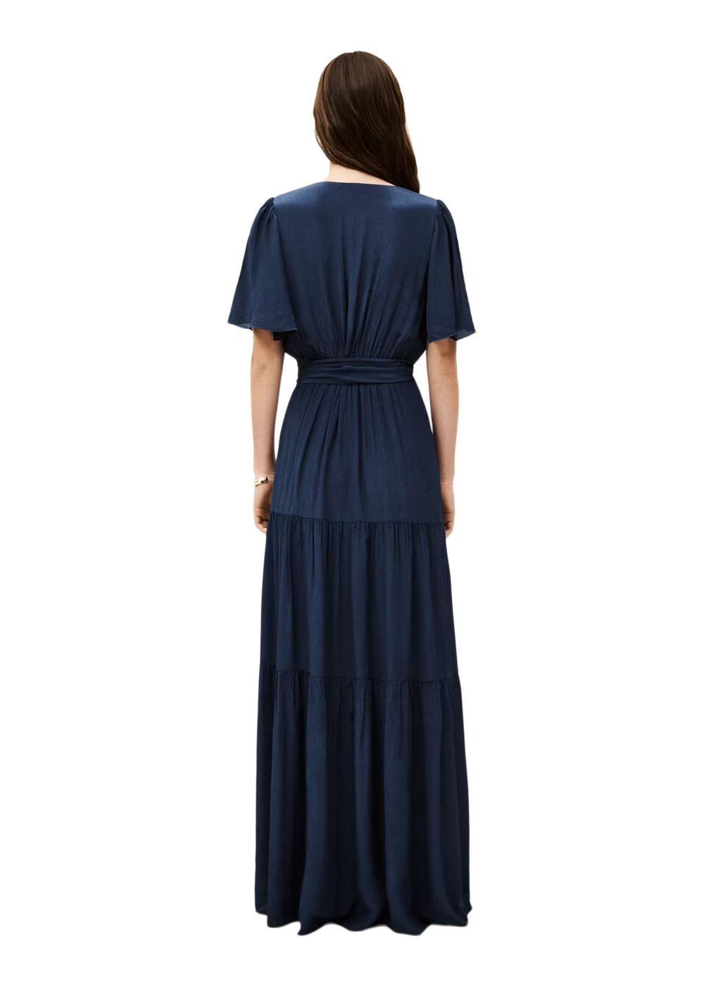 Oplev denne smukke, plisserede maxikjole fra Ba&sh i en elegant mørkeblå nuance. Kjolen har en feminin V-udskæring med slå-om-effekt, korte vingeærmer og et bindebånd, der smukt fremhæver taljen.