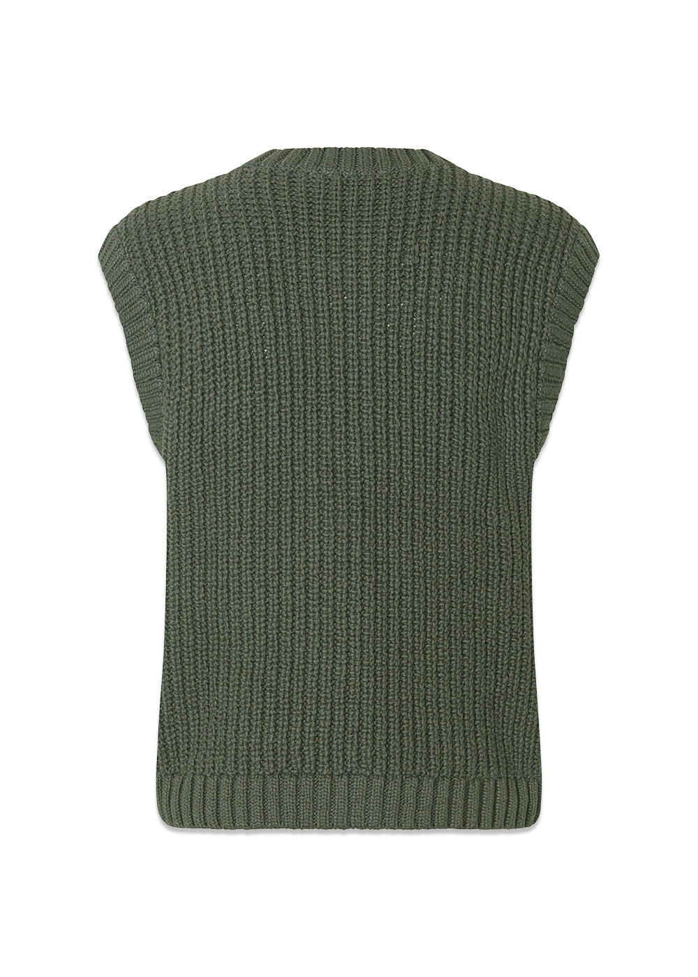 Scottmd Vest fra Modström er en klassisk, chunky strikvest i en dyb grøn farve. Den er designet i en kraftig ribkvalitet med kontrastknapper, der giver et stilfuldt og moderne udtryk til din garderobe.