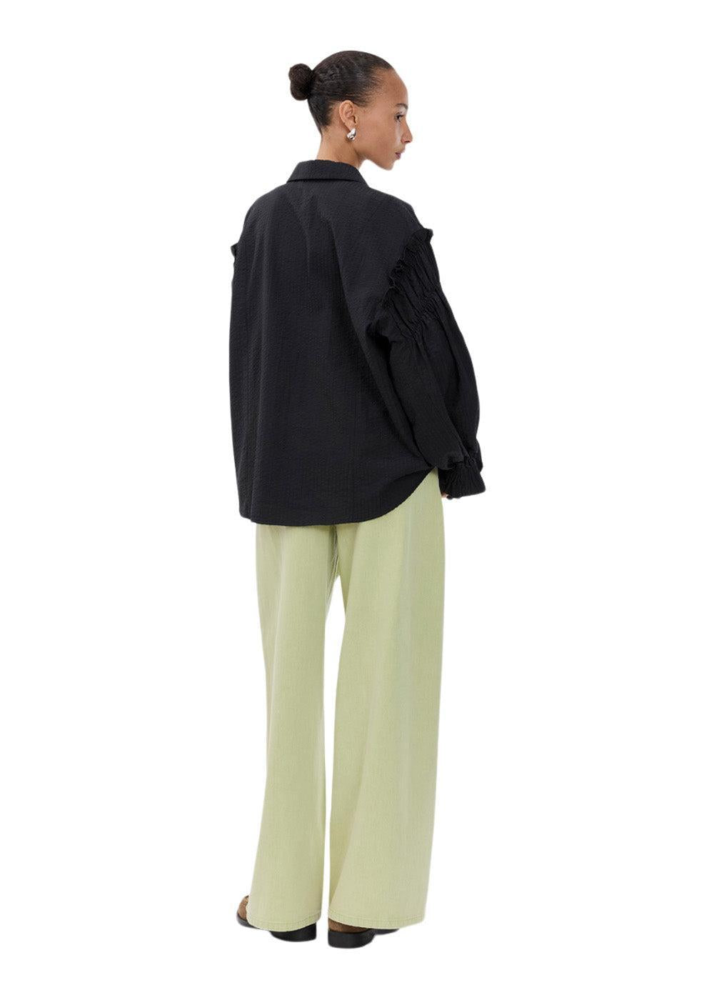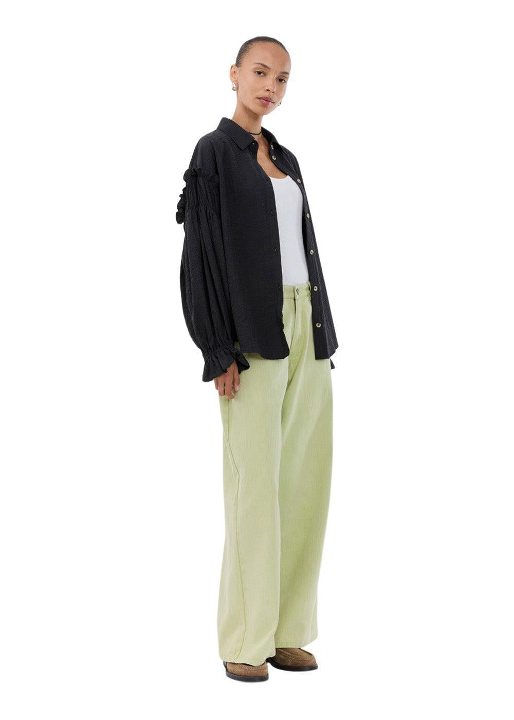 - Gale bukserne har et klassisk design i form af en høj talje og brede ben med pressefolder, som skaber et stilsikkert look