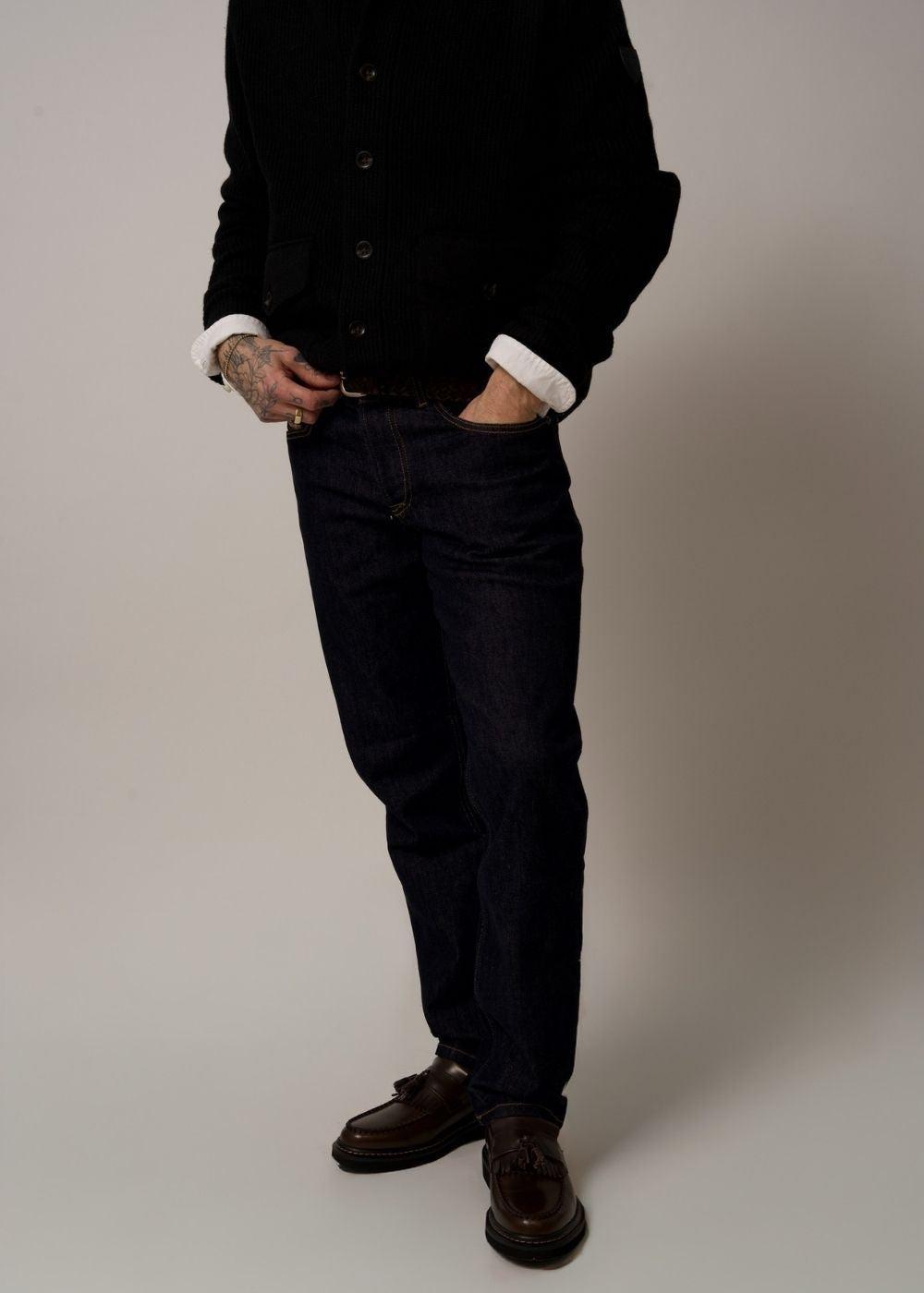 Disse mørkeblå jeans kombinerer klassisk stil med en moderne, tapered pasform. Den normale talje og de praktiske lommer gør dem til et oplagt valg for et stilfuldt og komfortabelt hverdagslook.