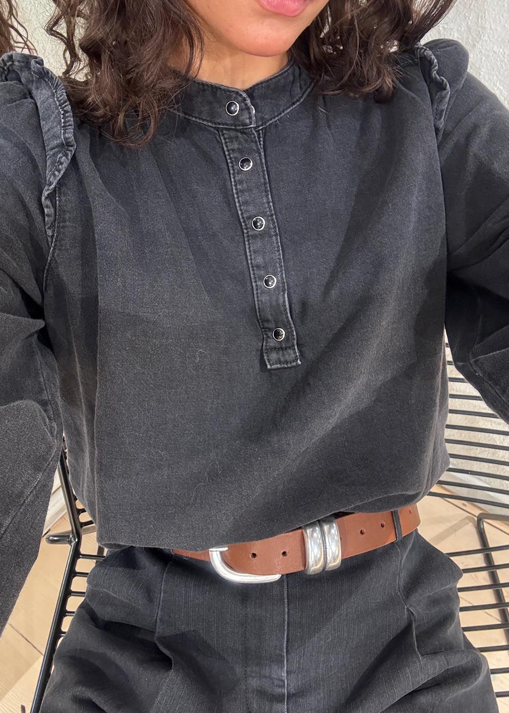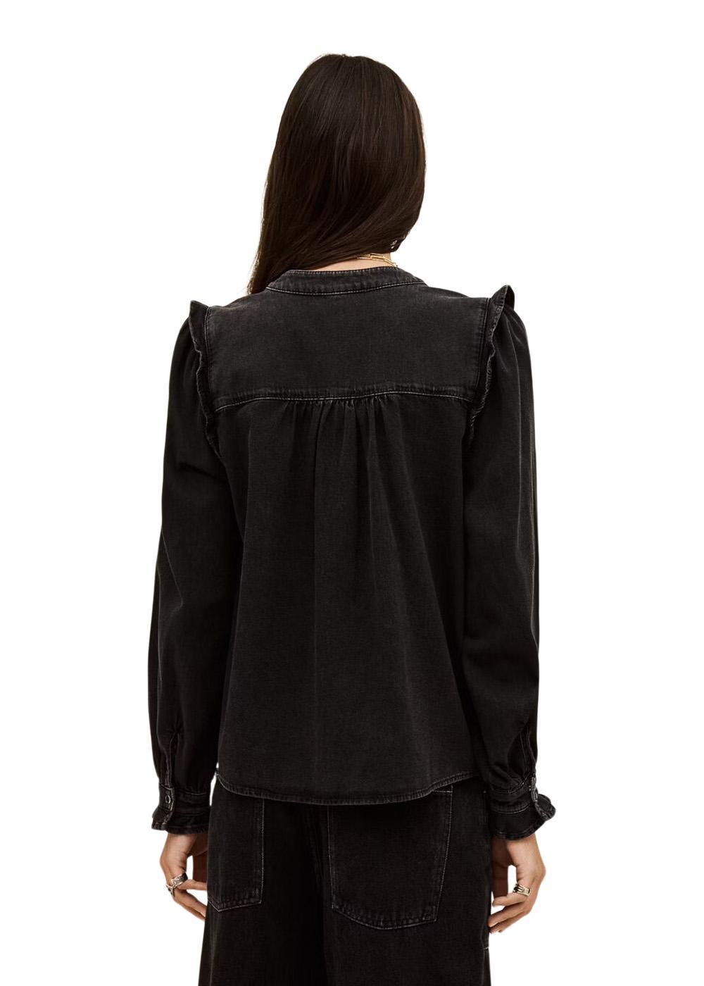 Oplev den elegante Ba&sh bluse i sort, der kombinerer retro stil med moderne komfort. Med sin afslappede pasform og trykknapper er den perfekt til både hverdag og festlige lejligheder.
