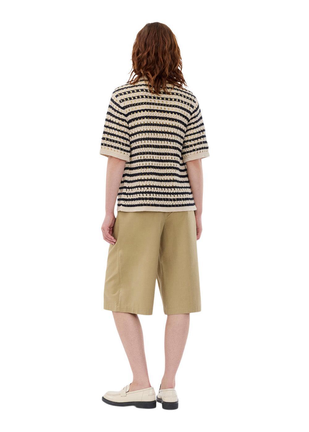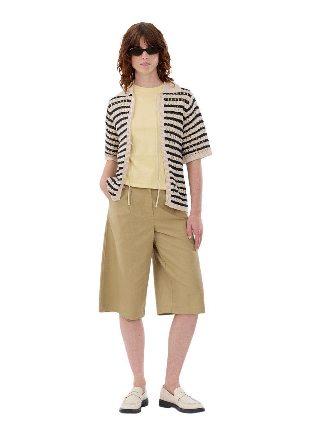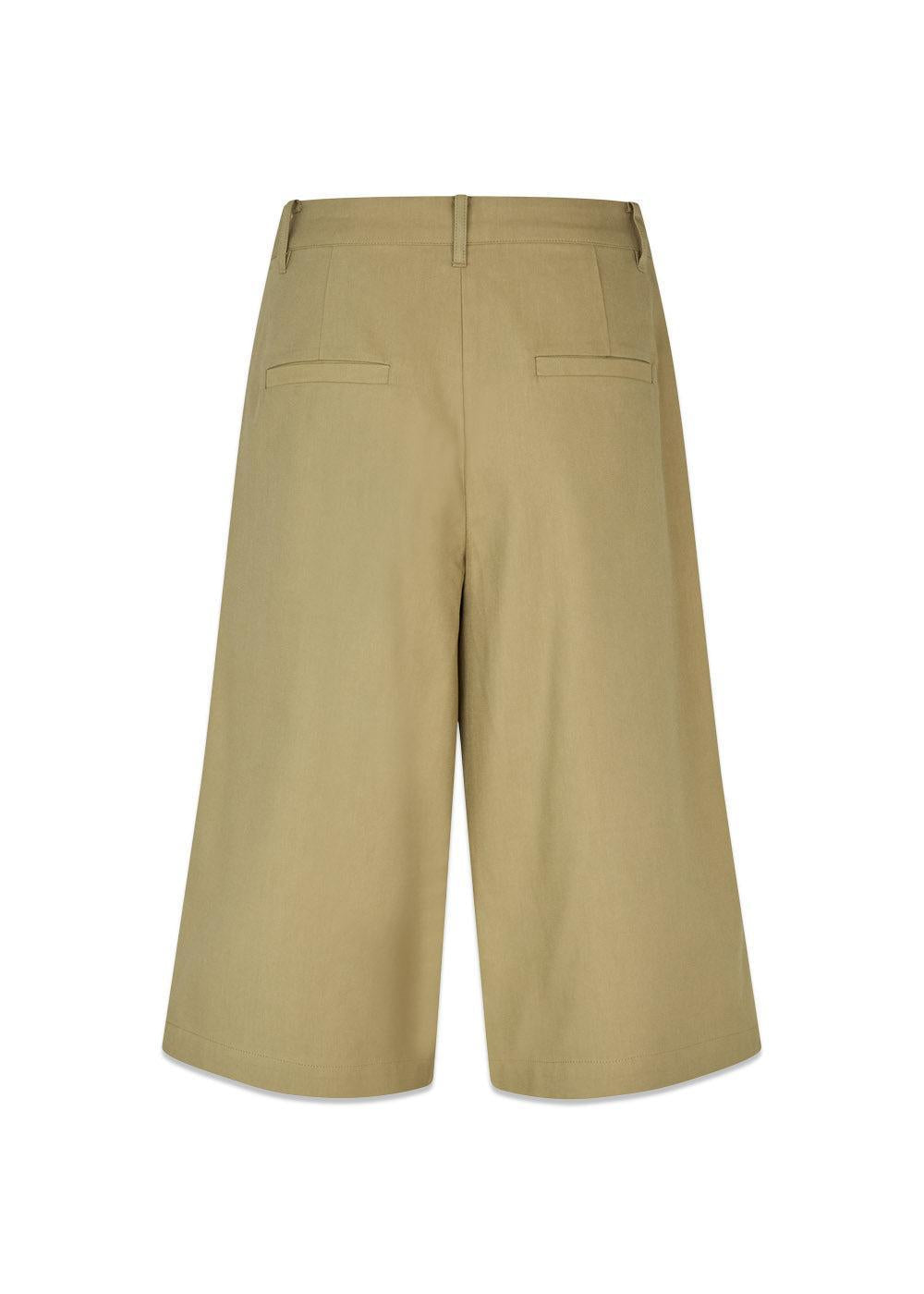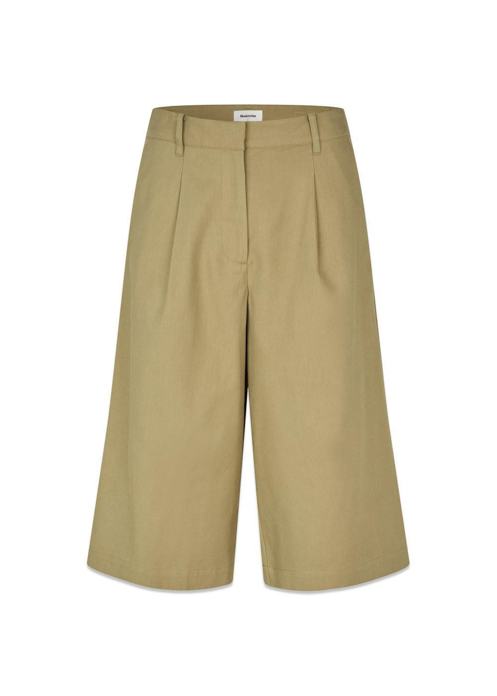 Toremd long shorts er knælange shorts i beige twill med et løst snit. De har et klassisk udtryk med markante snitlinjer, dobbeltlommer og lukkes med knap og lynlås.