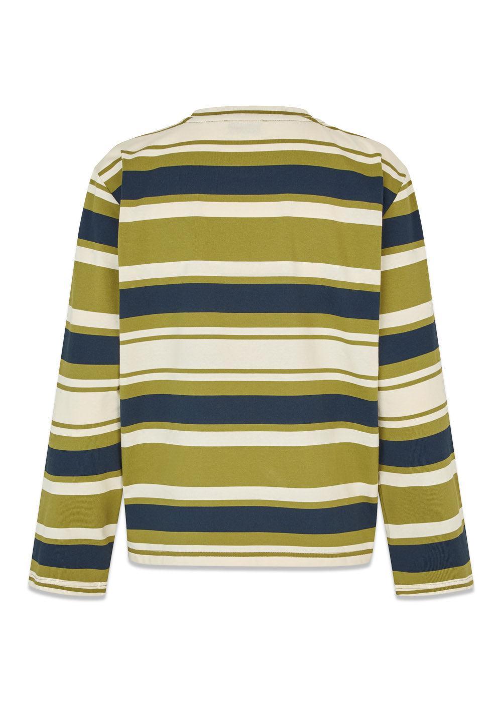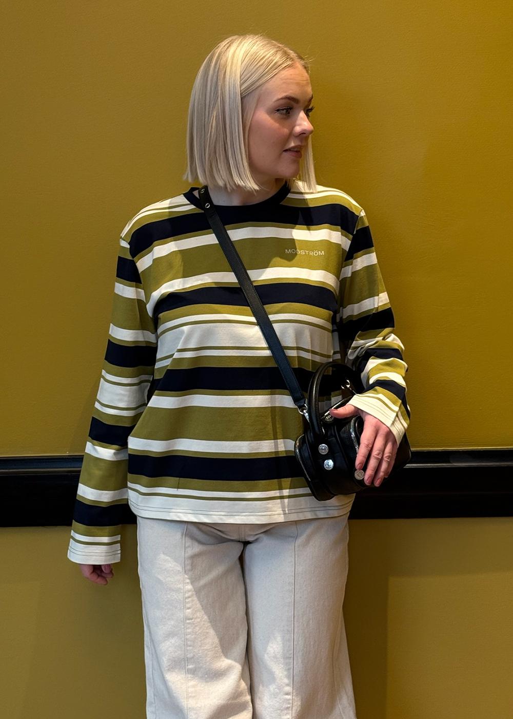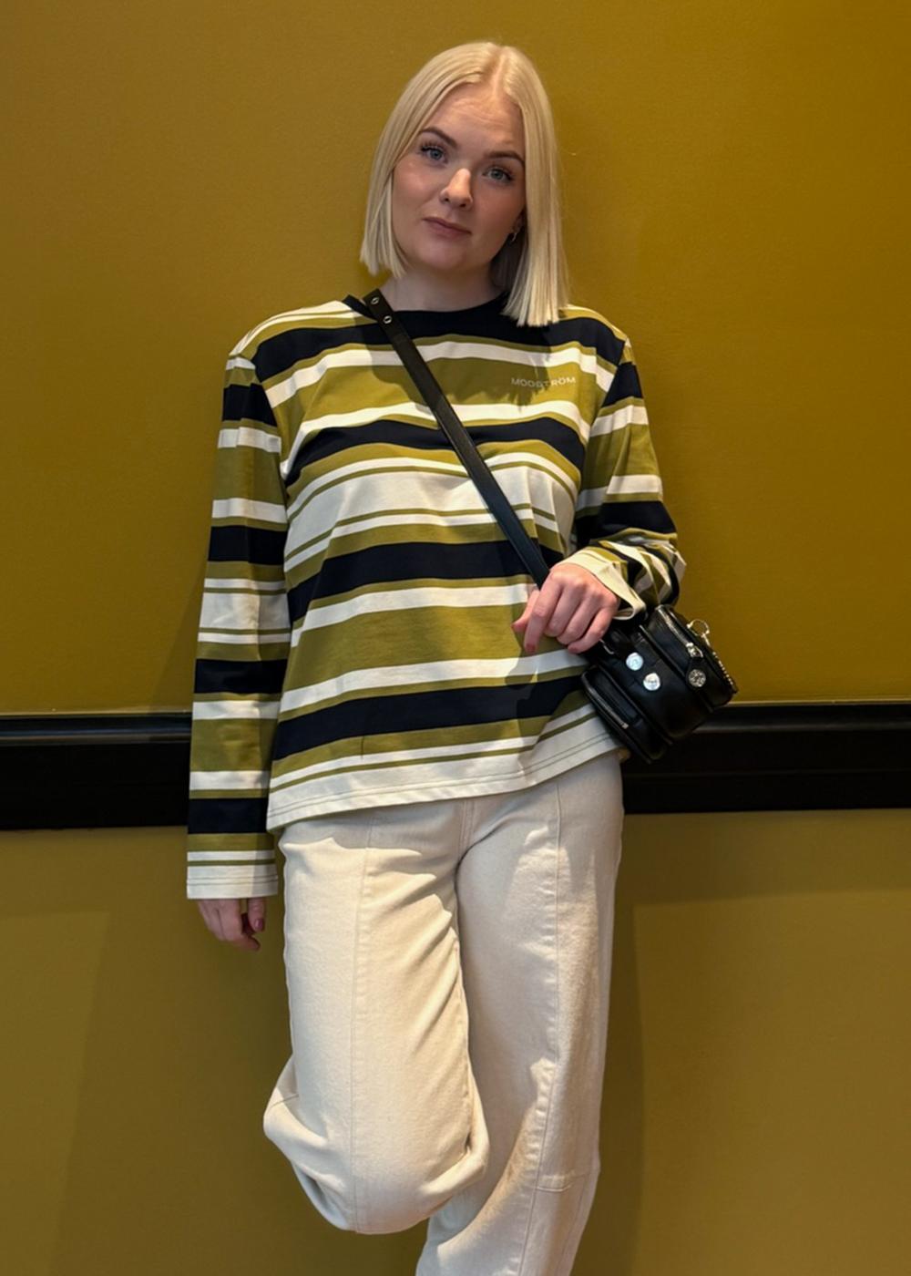 Denne langærmede T-shirt fra Modström har et klassisk, stribet mønster i en multifarvet kombination. Den er designet med et diskret broderet logo på brystet, som giver et stilfuldt og genkendeligt udtryk.