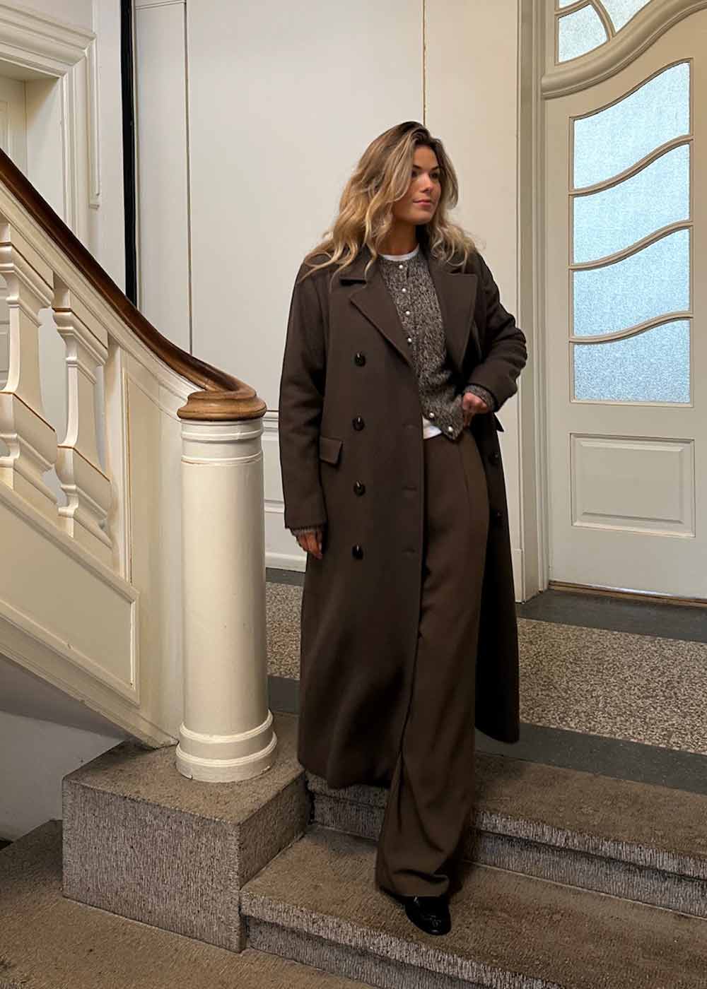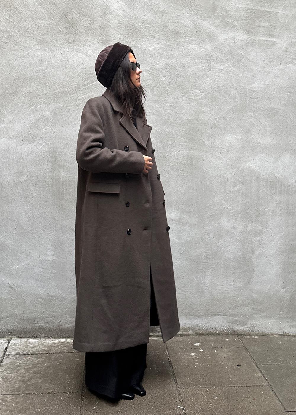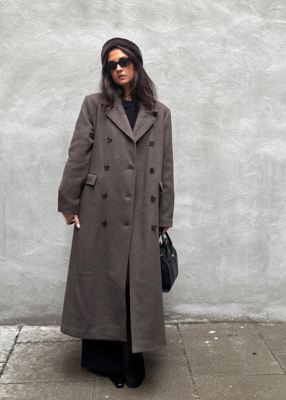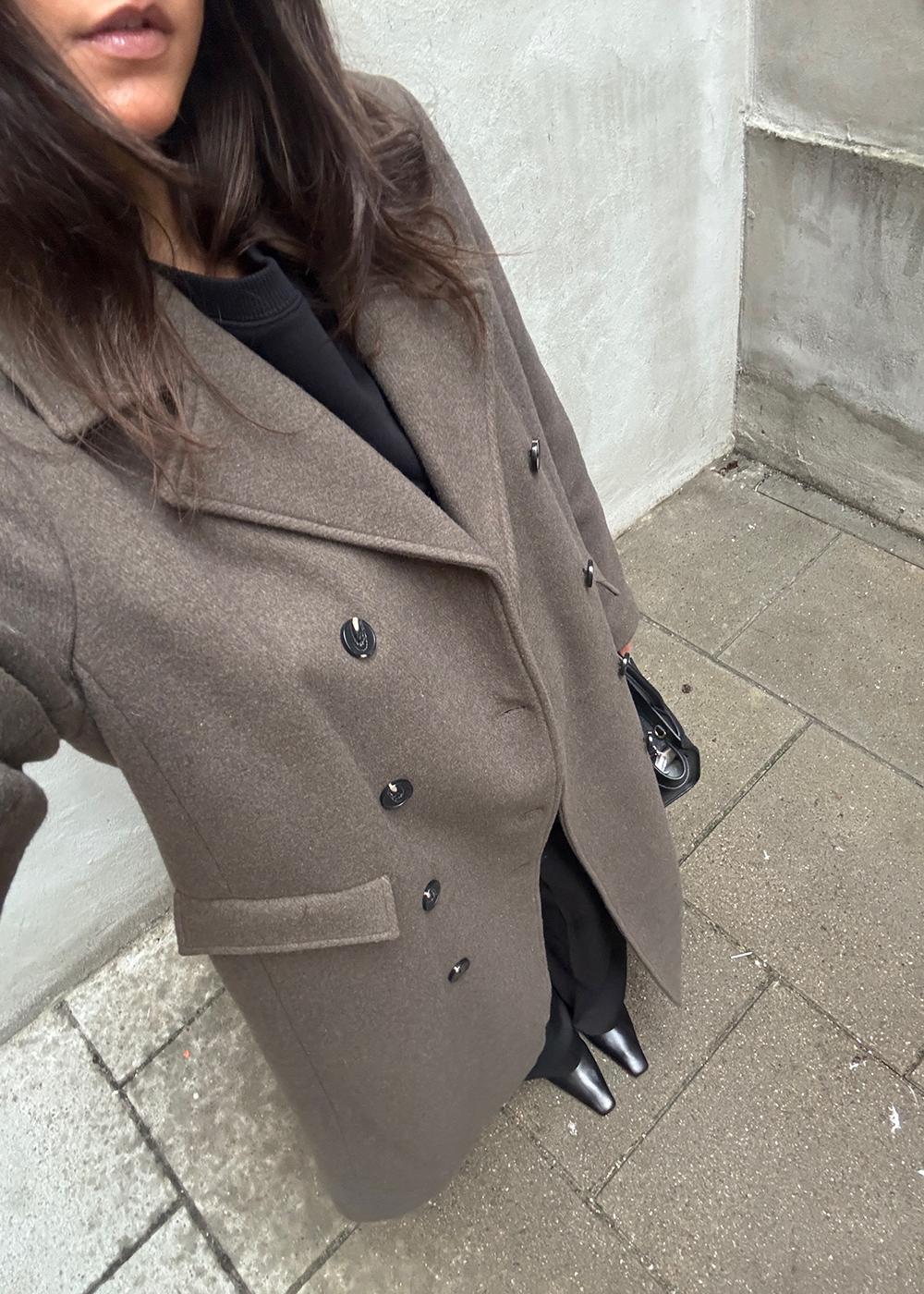 Denne frakke kombinerer et formelt udtryk med en afslappet pasform. Den varme uldblanding og de klassiske detaljer gør den til et alsidigt valg til både hverdag og festlige lejligheder.