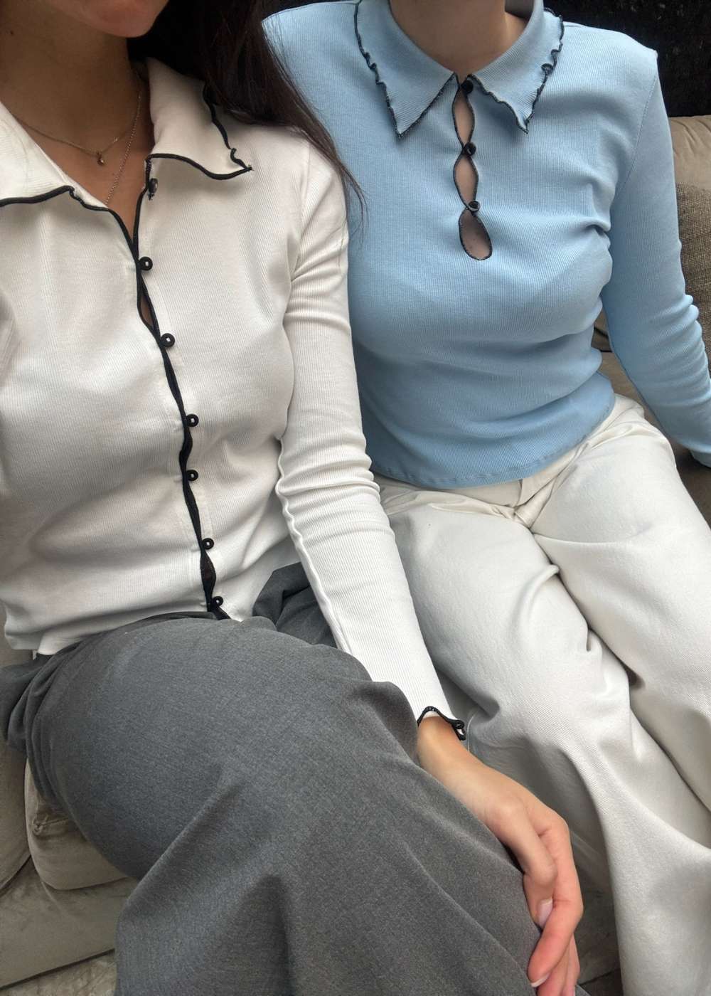 - Detaljer: Polokrave med kontrastbroderi og specielle knapper
