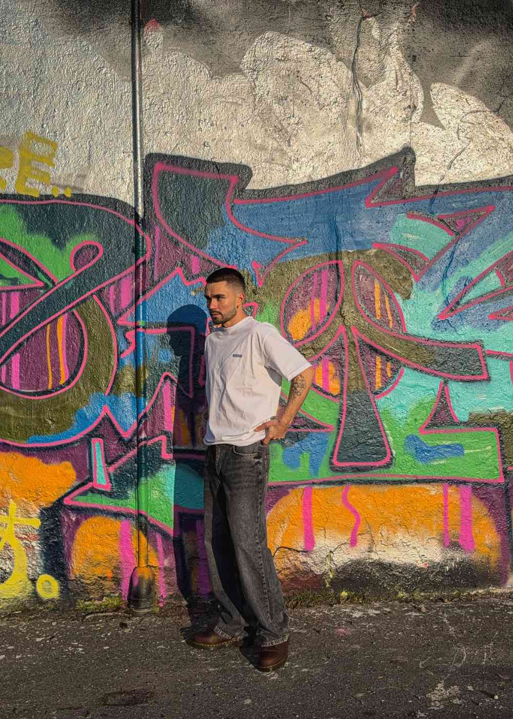 Denne T-shirt fra Woodbird i en hvid/creme farve har et afslappet streetwear-udtryk. Den er designet med et iøjnefaldende grafisk print på ryggen og et diskret logo på brystet, fremstillet i økologisk bomuld.