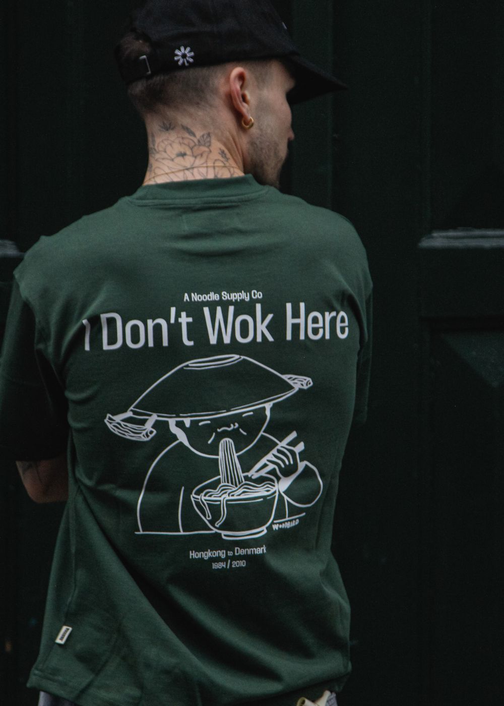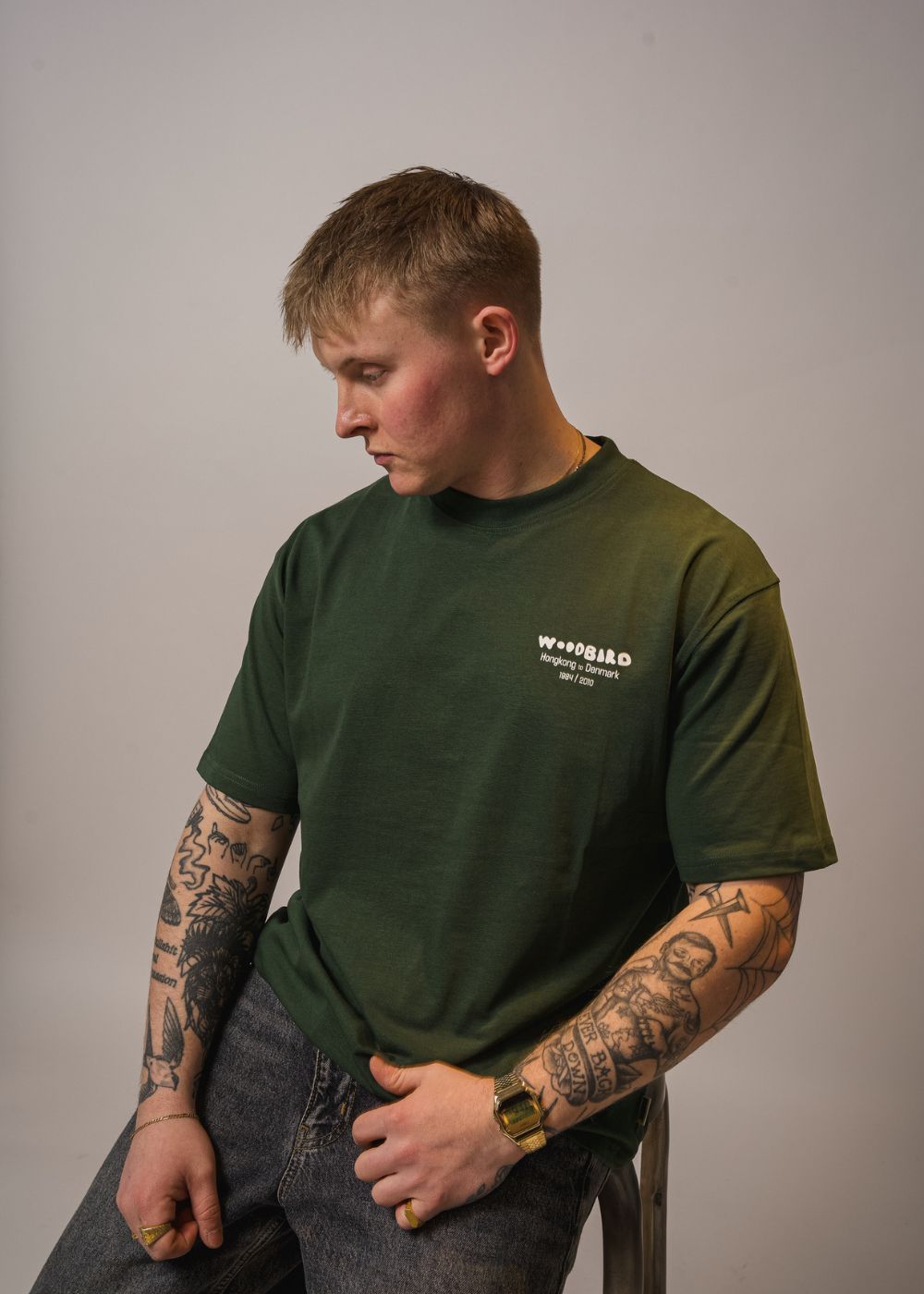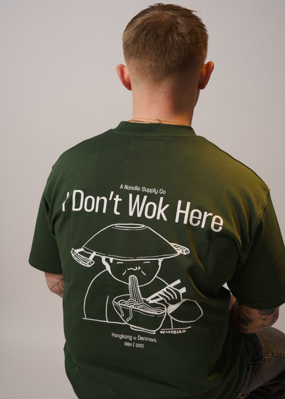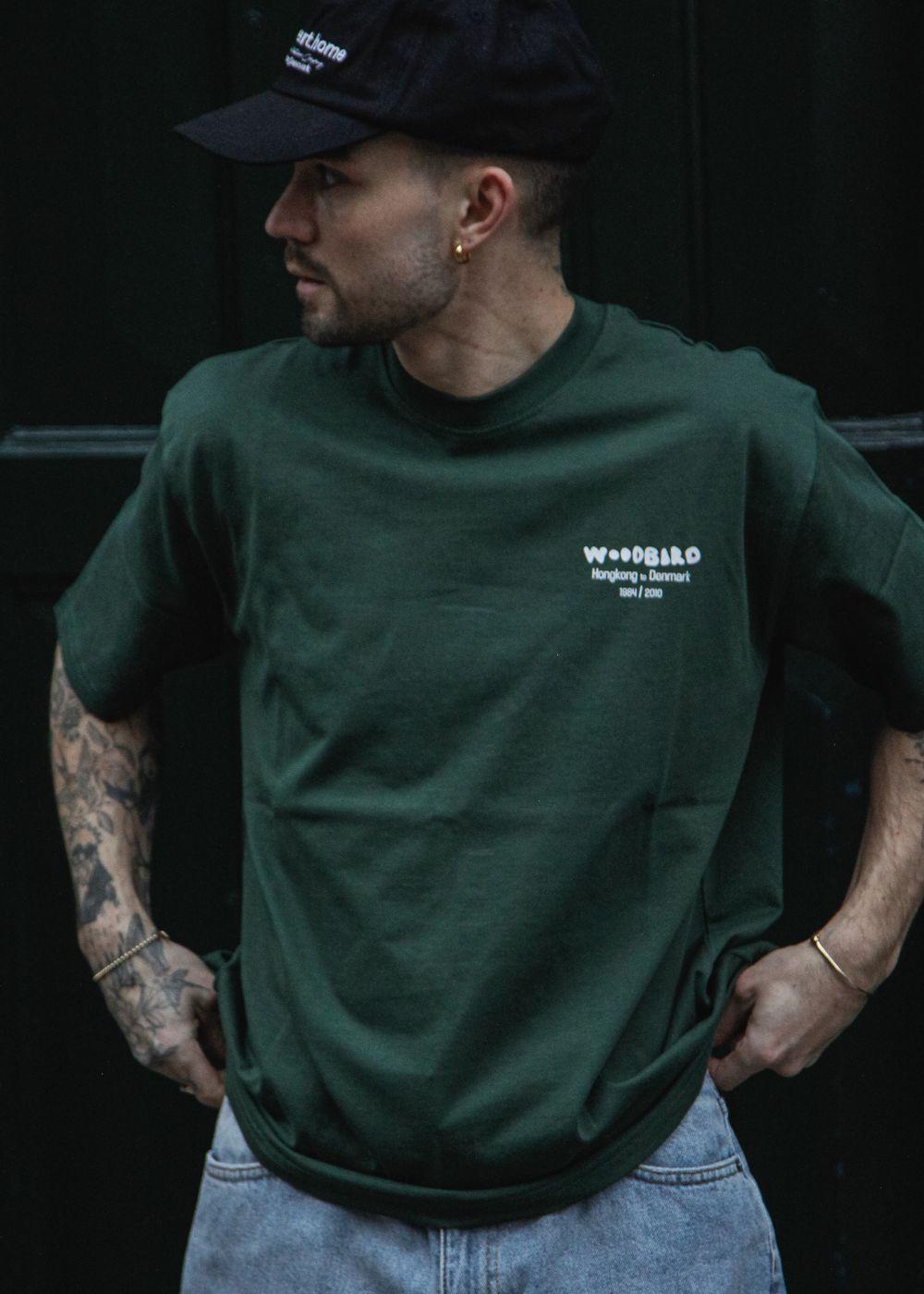 Baine Wok Tee fra Woodbird er en grøn T-shirt i en afslappet streetwear-stil. Den er fremstillet i økologisk bomuld og har et statement-print på ryggen, drop-shoulder-ærmer og en klassisk rund hals.