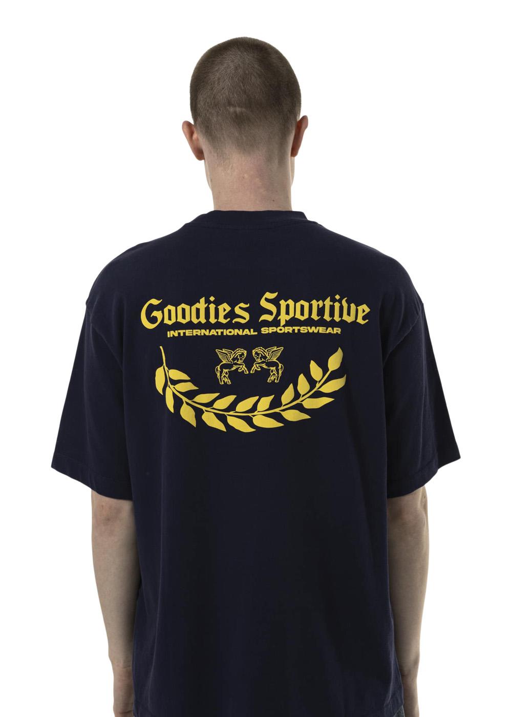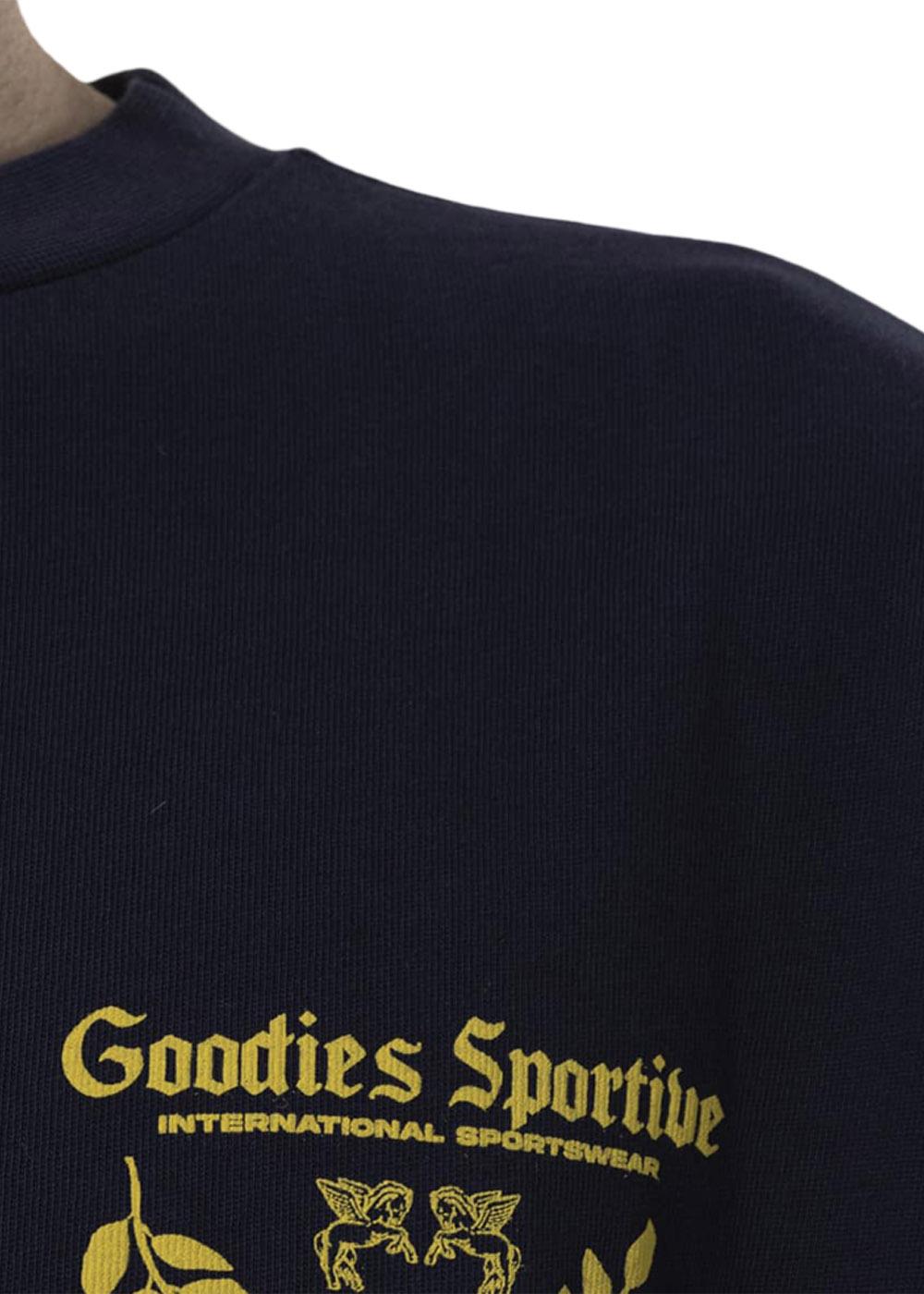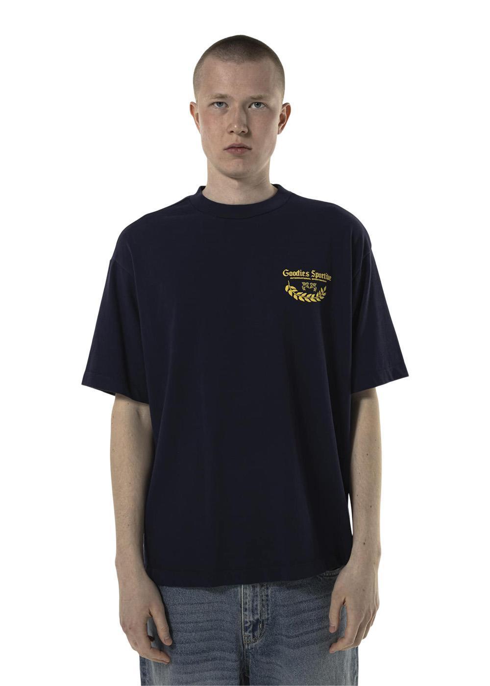 Denne T-shirt kombinerer en afslappet pasform med et sporty print, ideel til hverdagsbrug. Den dybe marineblå farve og det enkle design gør den til en alsidig og komfortabel tilføjelse til enhver garderobe.
