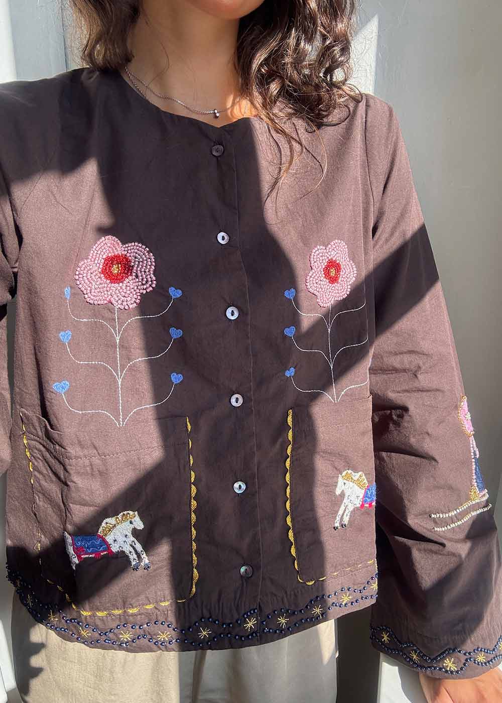 Emmy Shirt fra Sissel Edelbo kombinerer retro stil med moderne detaljer. De lange trompetærmer og knaplukning giver et unikt look, perfekt til både hverdag og festlige lejligheder. Oplev komfort og stil i én.