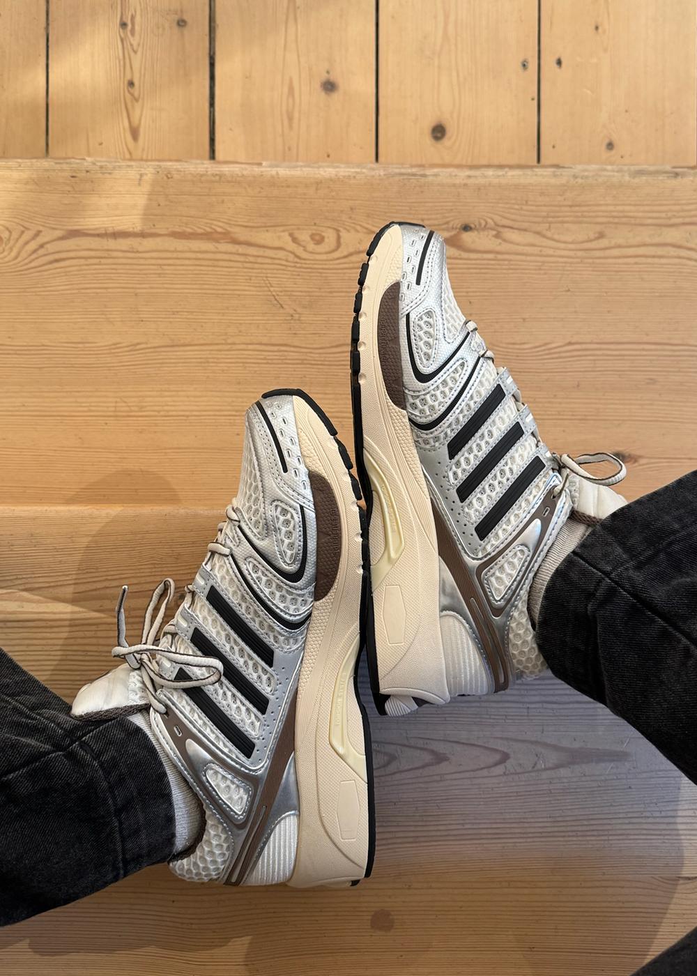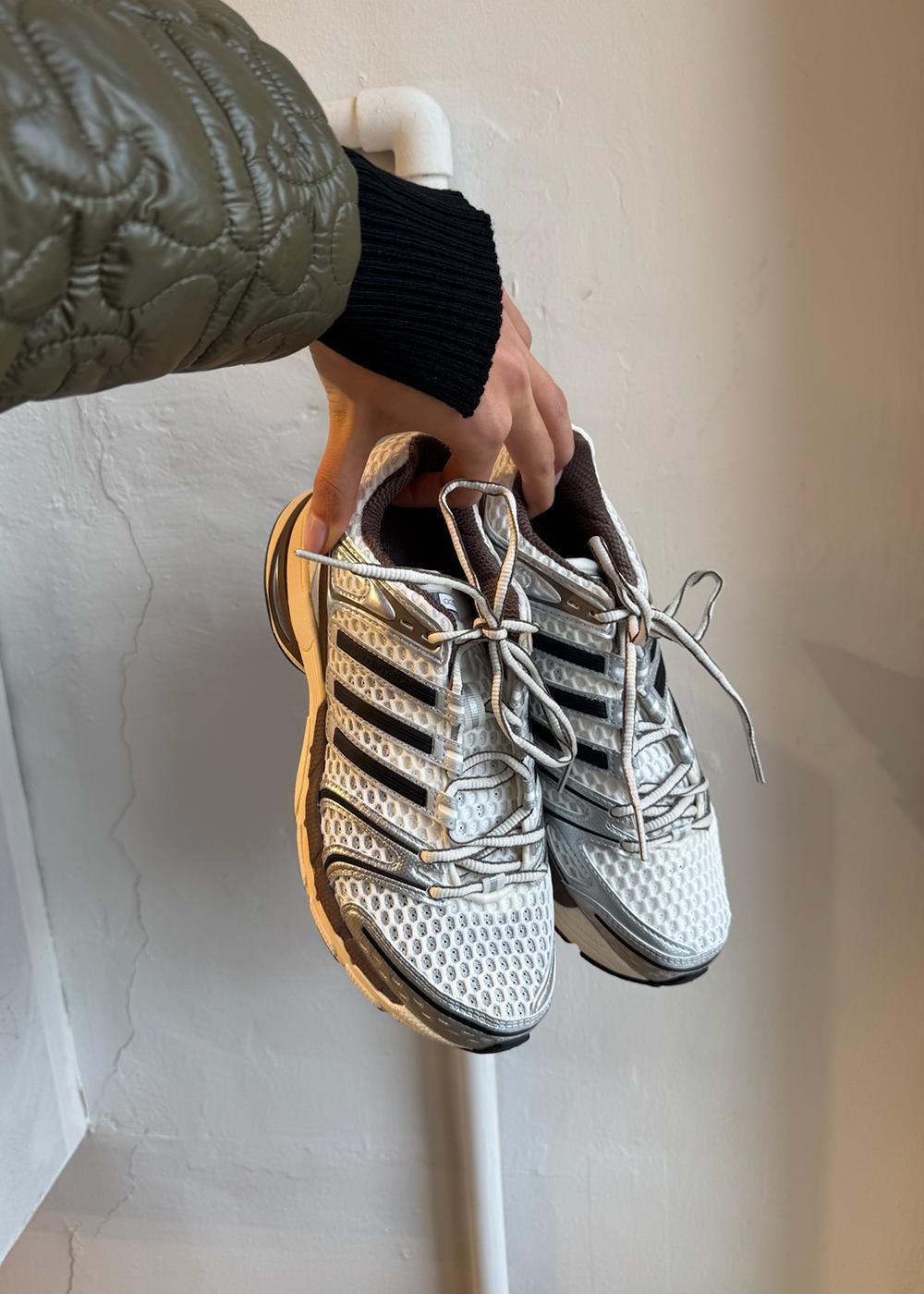 Giv din stil et løft med ADISTAR CONTROL 5 fra Adidas Originals. Denne low-top sneaker kombinerer en hvid base med iøjnefaldende kontrastdetaljer i sølv, sort og brun, hvilket skaber et dynamisk og moderne retro-look.