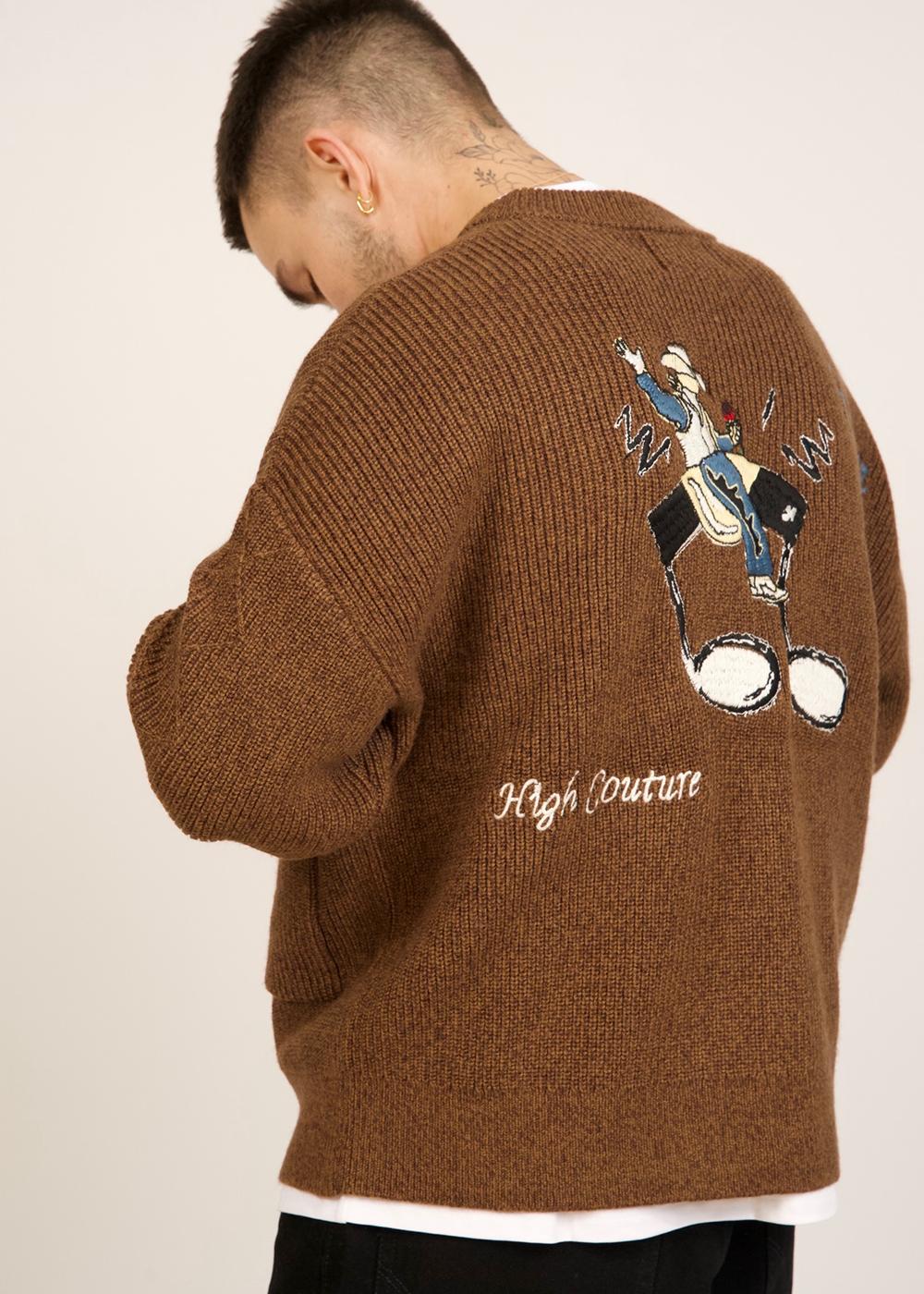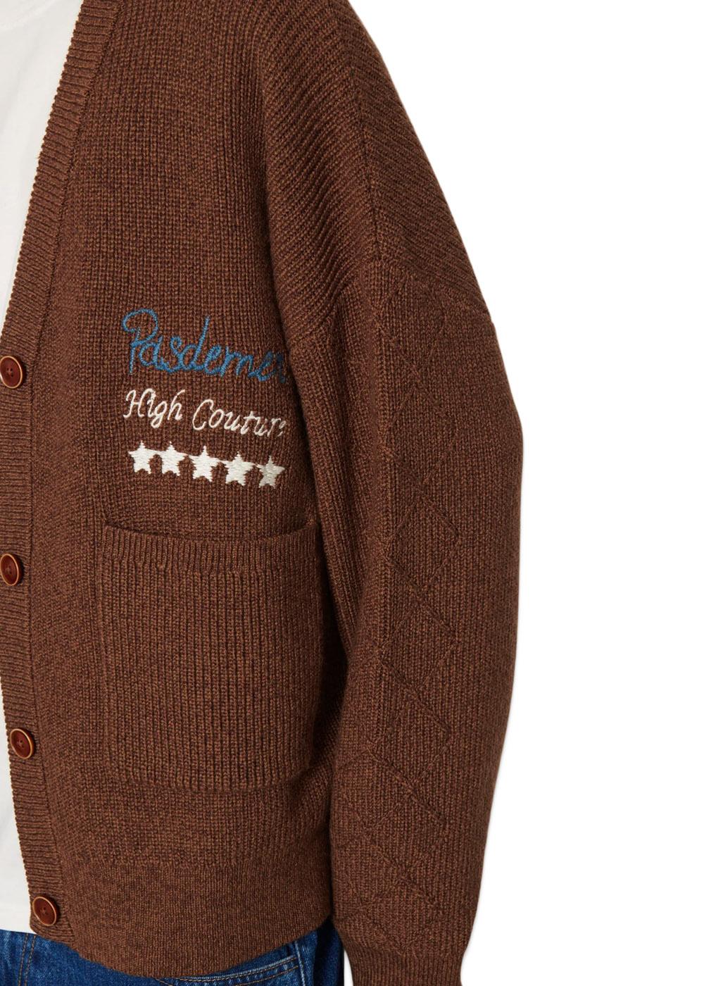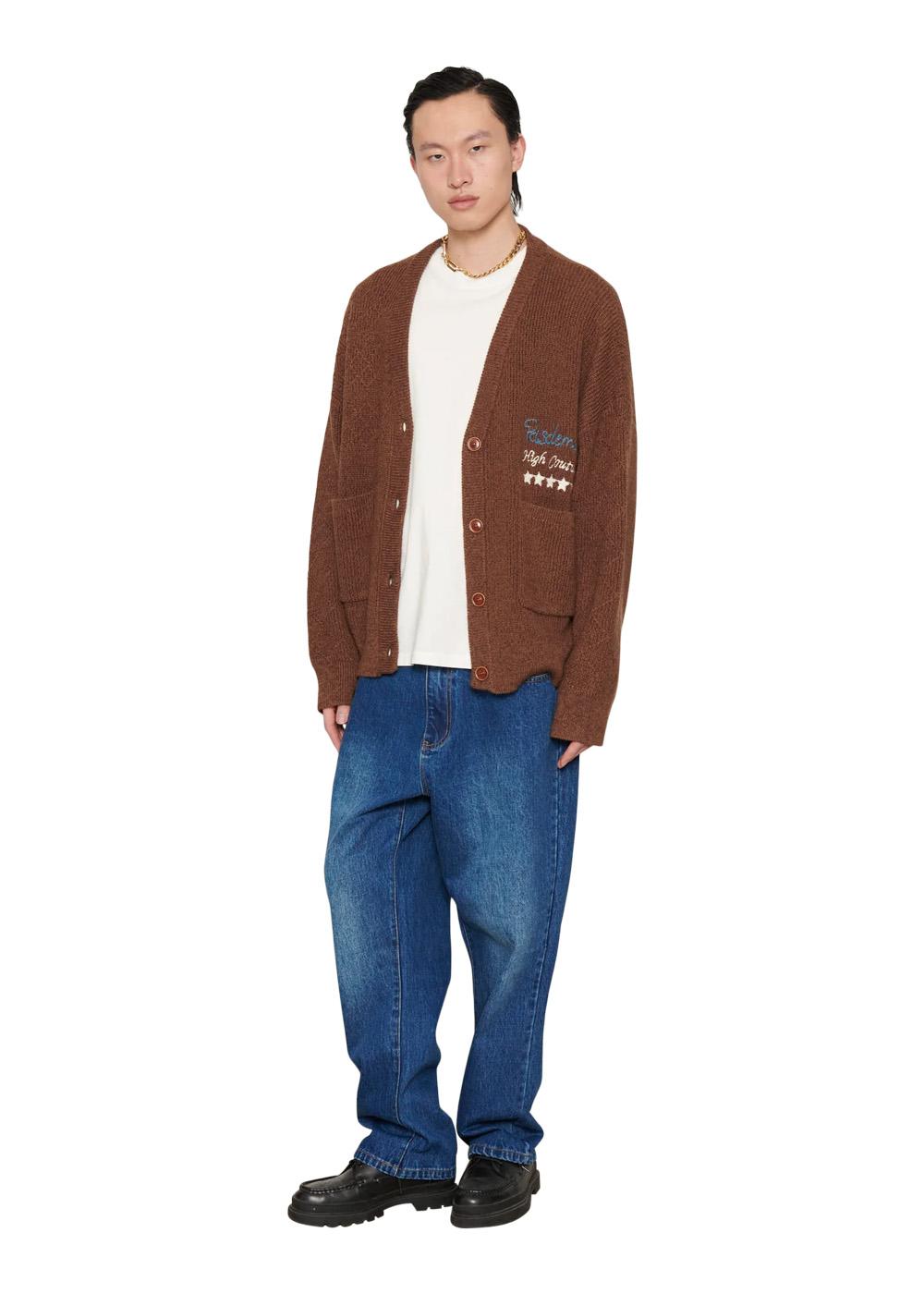 Denne chunky Rodeo Cardigan fra Pas de Mer er udført i en blød alpaca-blanding. Den har et afslappet streetwear-udtryk med iøjnefaldende broderi på bryst og ryg, som giver et unikt og moderne look.