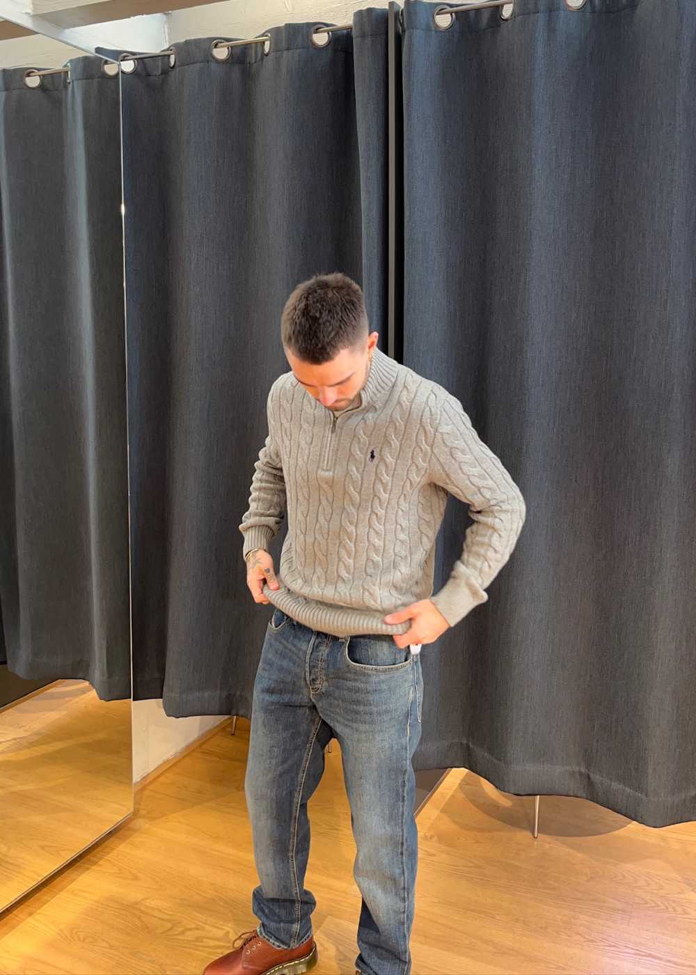 Denne klassiske kabelstrikkede sweater fra Ralph Lauren er fremstillet i blød bomuld. Den alsidige grå farve, elegante 1/4-lynlås og det ikoniske broderede logo skaber et tidløst og stilfuldt look til enhver lejlighed.