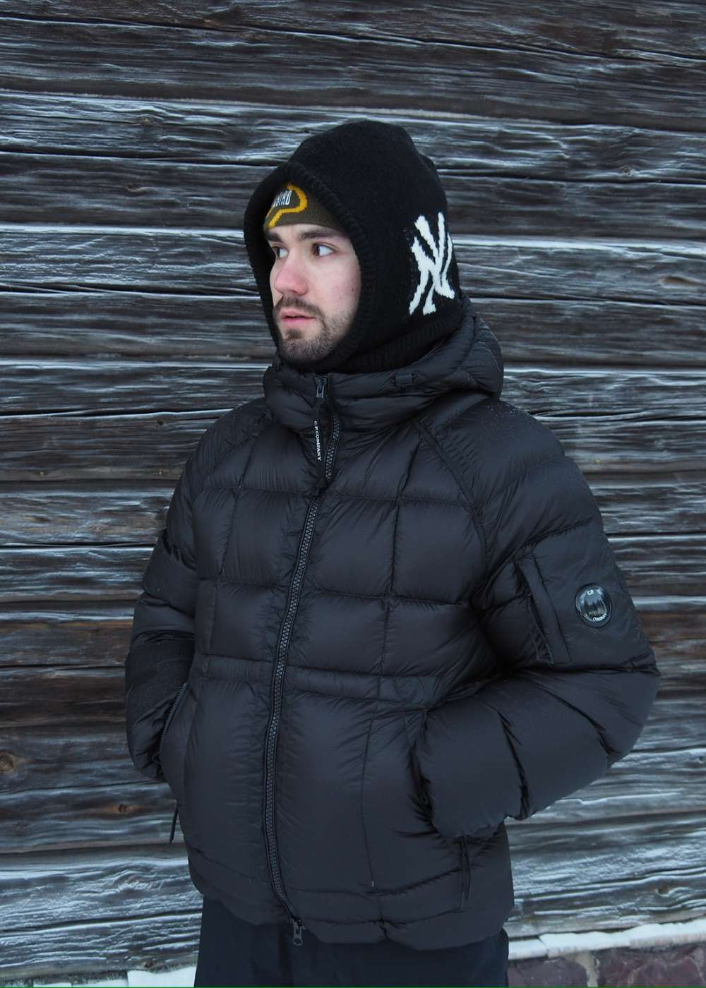 DD-Shell dunjakke fra C.P. Company. Denne korte jakke i en dyb brun farve kombinerer streetwear-stil med funktionalitet og har en fast hætte og et quiltet design for optimal varme og komfort.