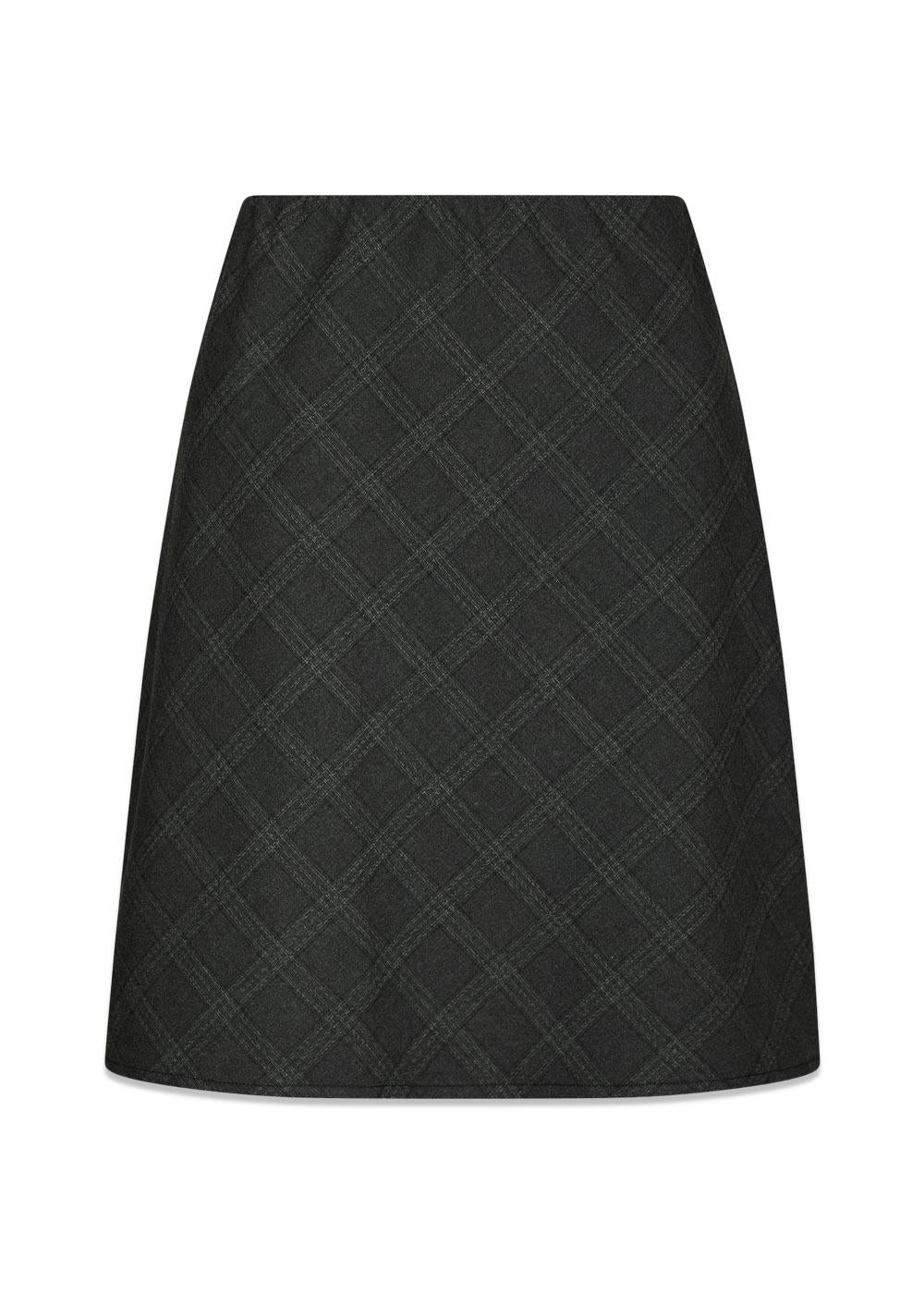 Lunna Check Short Skirt er en kort, A-formet nederdel fra Neo Noir i en mørkegrå antracitfarve. Den har et fint ternet mønster og et feminint udtryk med et strejf af 90'er-stil.