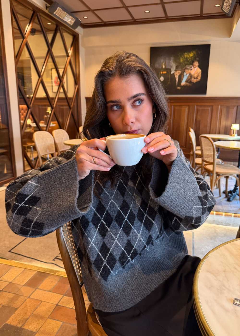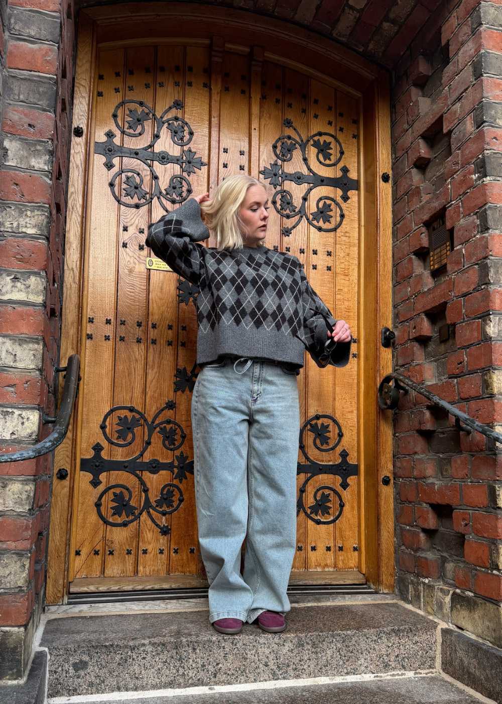 - Jacquardstrikket med et iøjnefaldende ternet mønster
