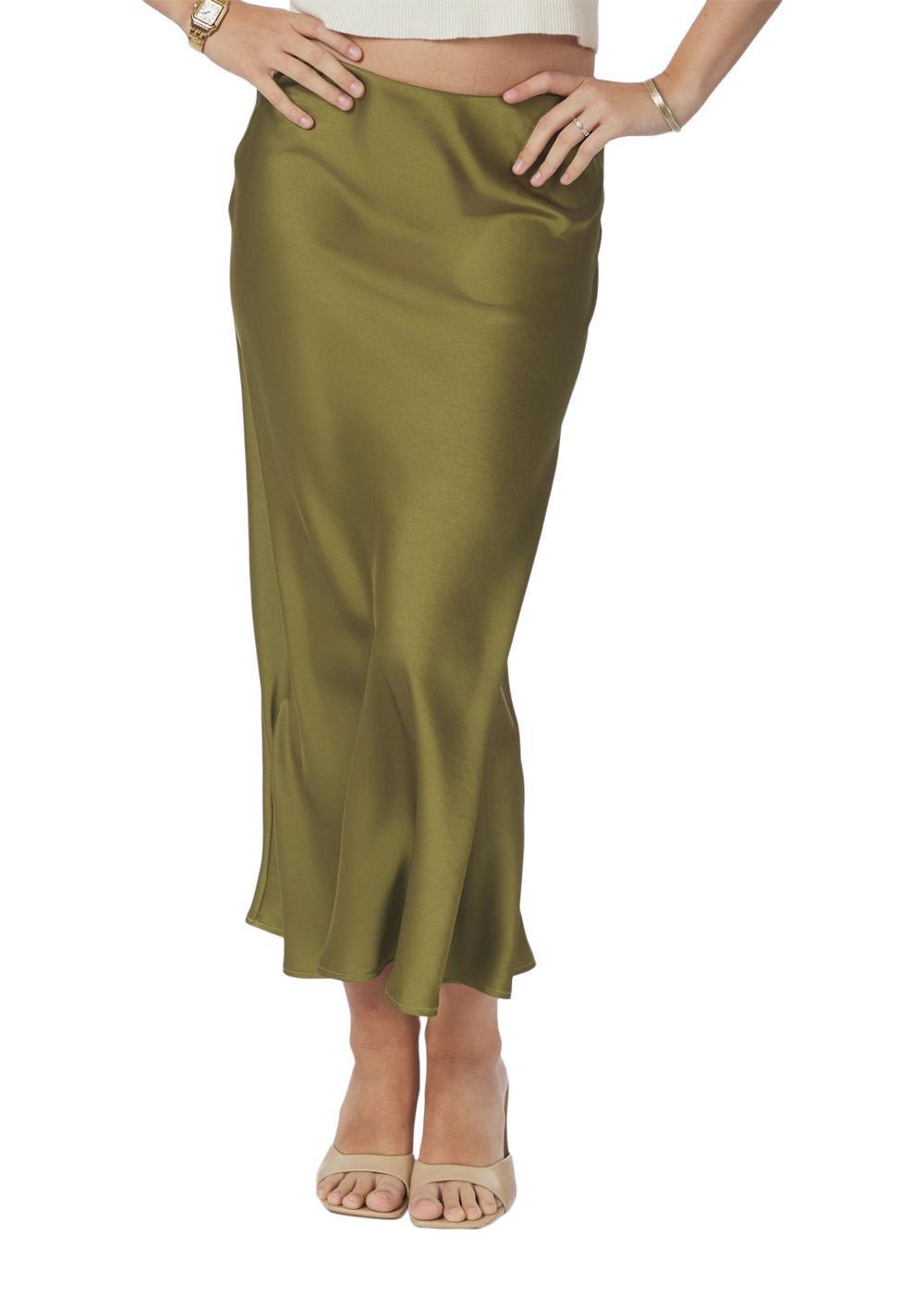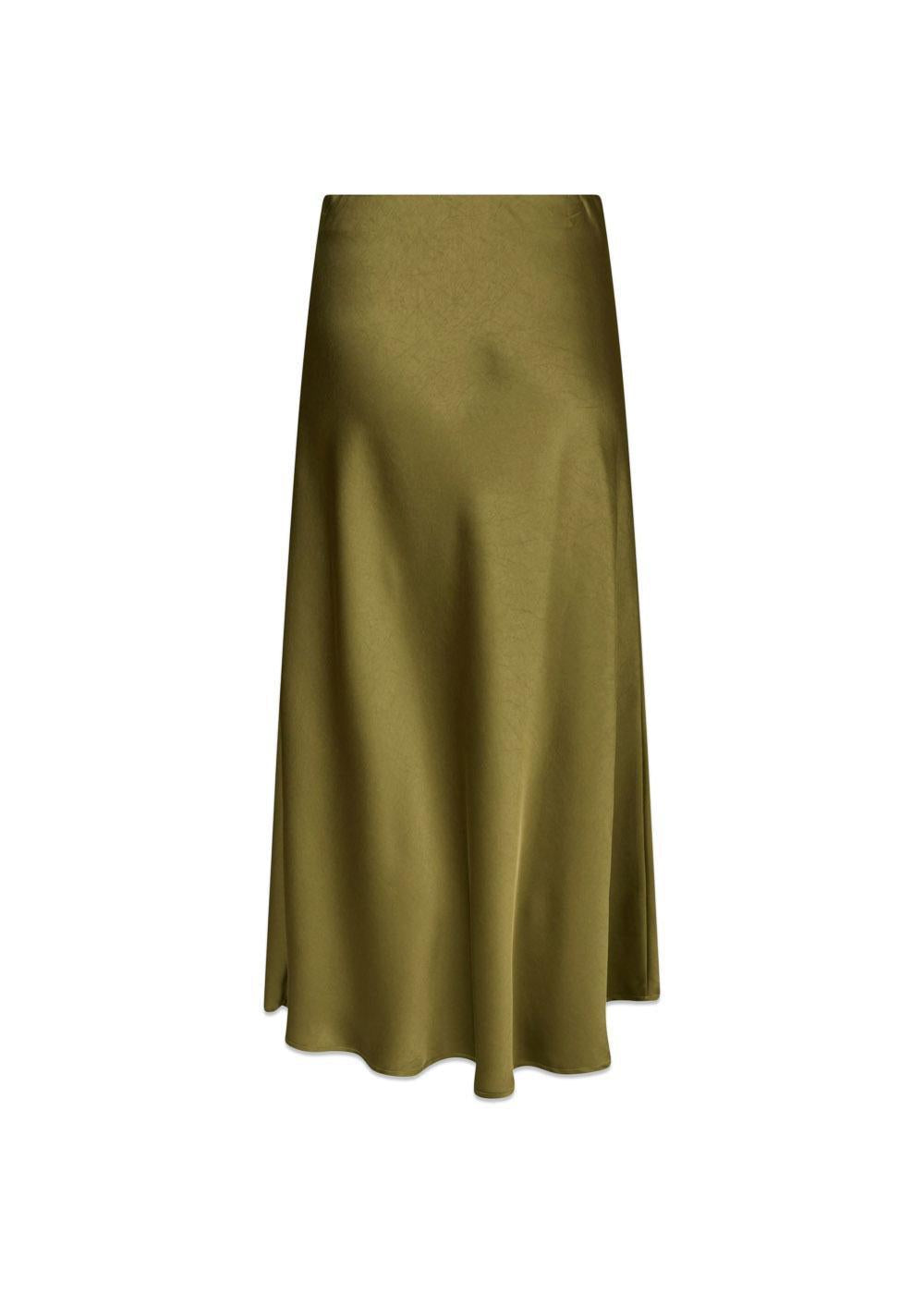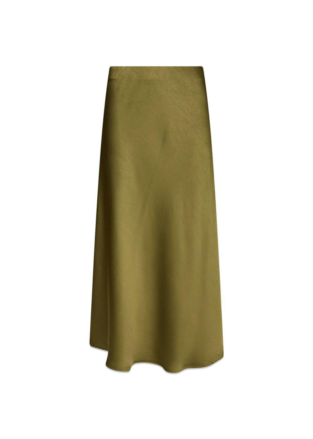 Bovary Skirt fra Neo Noir er en elegant, lang nederdel i en smuk salviegrøn farve. Den er fremstillet i en blød satinkvalitet og skåret på skrå, hvilket giver et smukt, draperet fald.