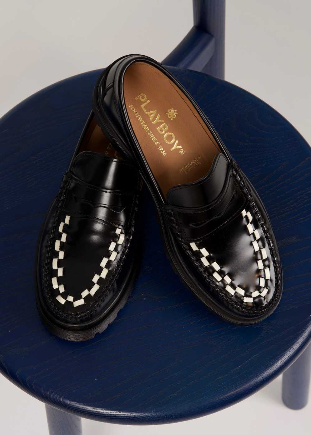 DUNCAN fra Playboy Footwear er en chunky loafer i sort, poleret læderlook med et iøjnefaldende ternet mønster. Skoen har en kraftig platformsål, der giver et moderne og markant udtryk.