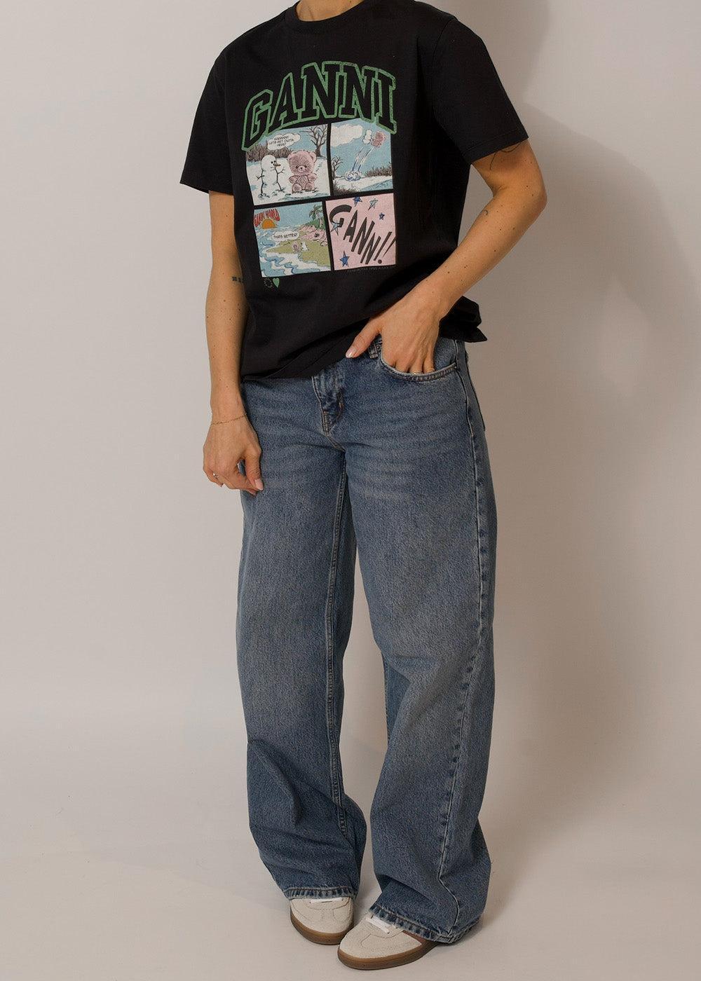 - Iøjnefaldende grafisk print med Ganni-logo og tegneseriemotiv.