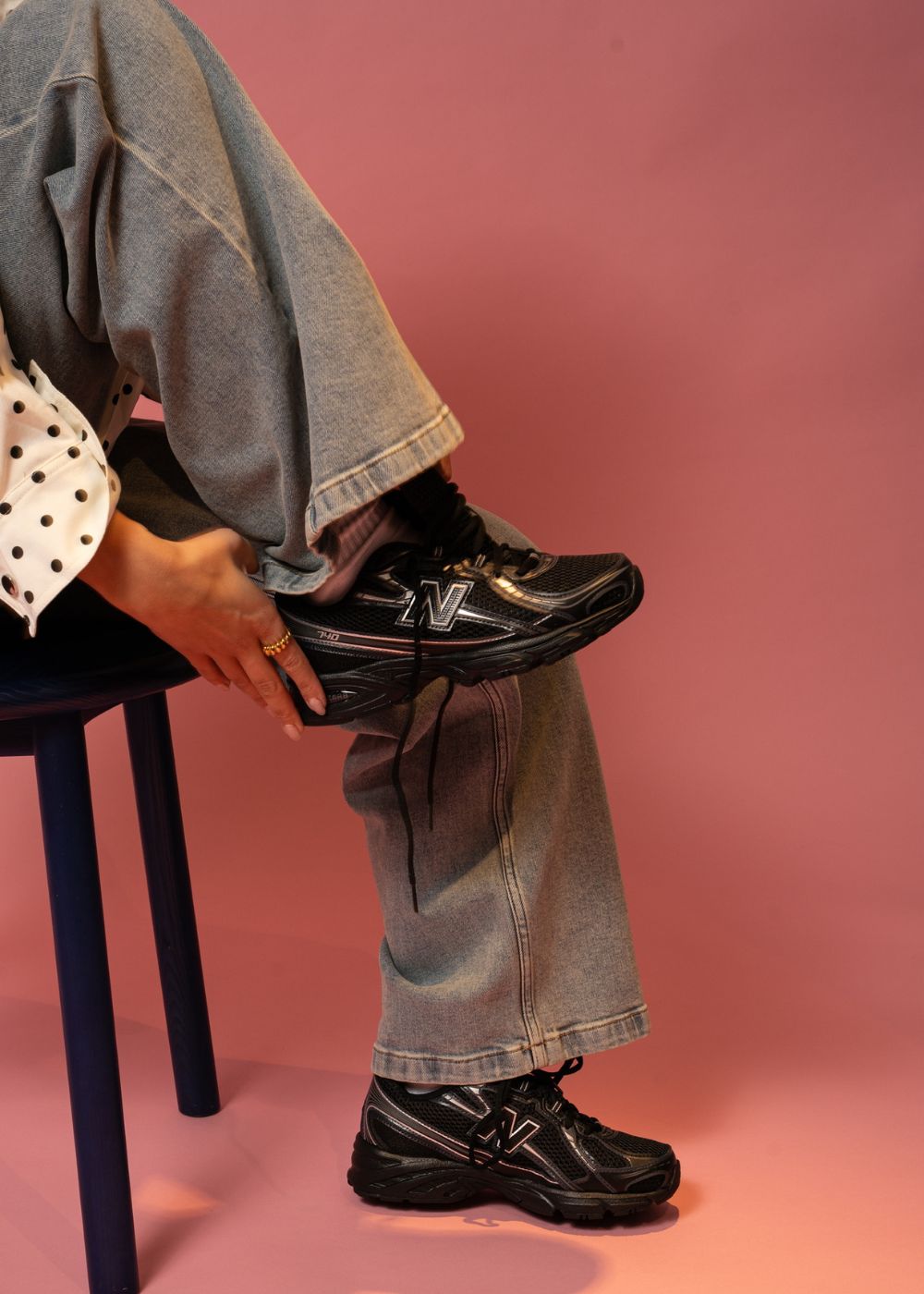 Opdag New Balance U740BM2, en klassisk low-top sneaker i sort med markante grå kontrastdetaljer. Designet kombinerer et sporty udtryk med en rund snude og det ikoniske logo, hvilket skaber et tidløst og alsidigt look.