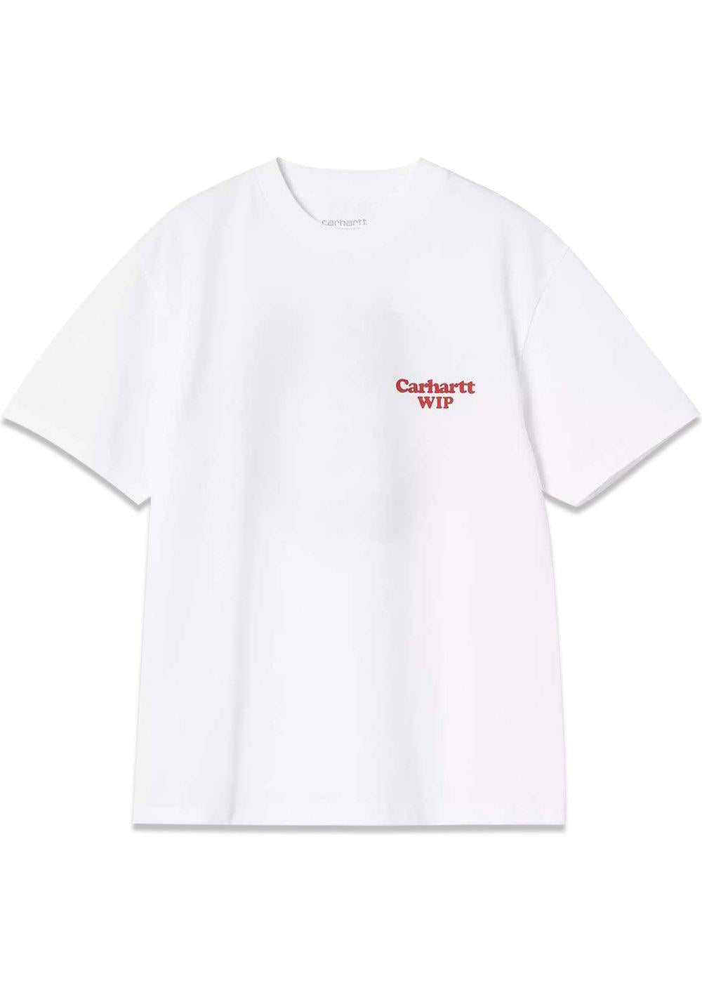 Hvid kortærmet t-shirt fra Carhartt WIP i et klassisk streetwear-design. Trøjen har et regulært snit med crew neck og er dekoreret med grafiske print på både bryst og ryg.