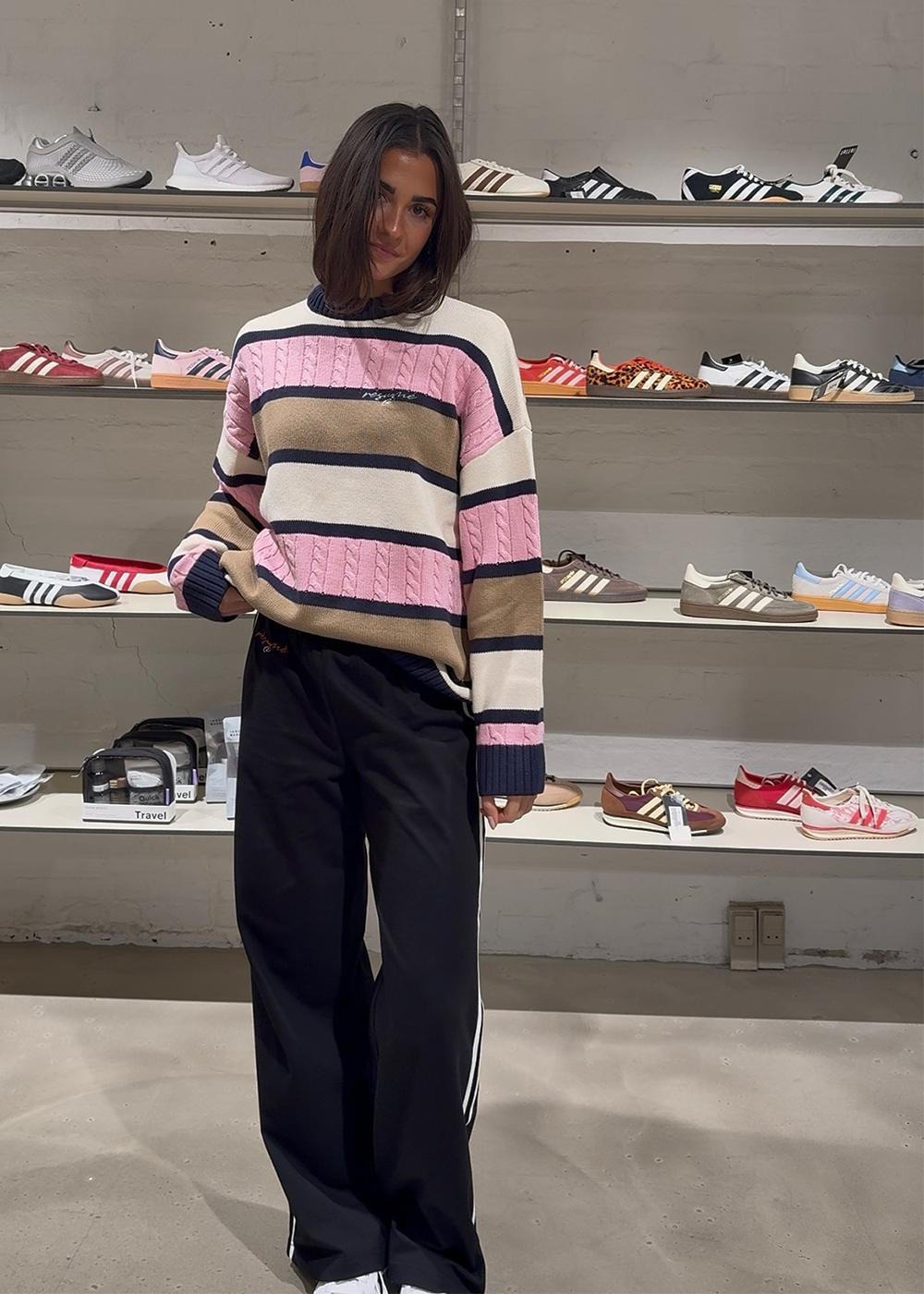 - Fine kabelstrik-detaljer i de lyserøde striber