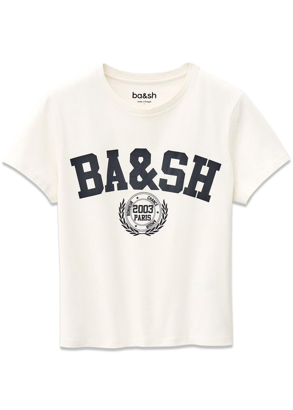 IONI T-shirten fra Ba&sh er en klassisk T-shirt i en flot ecru-farve. Den er designet i en varsity-stil og fremstillet i blød, økologisk bomuld, hvilket giver et afslappet og tidløst udtryk.