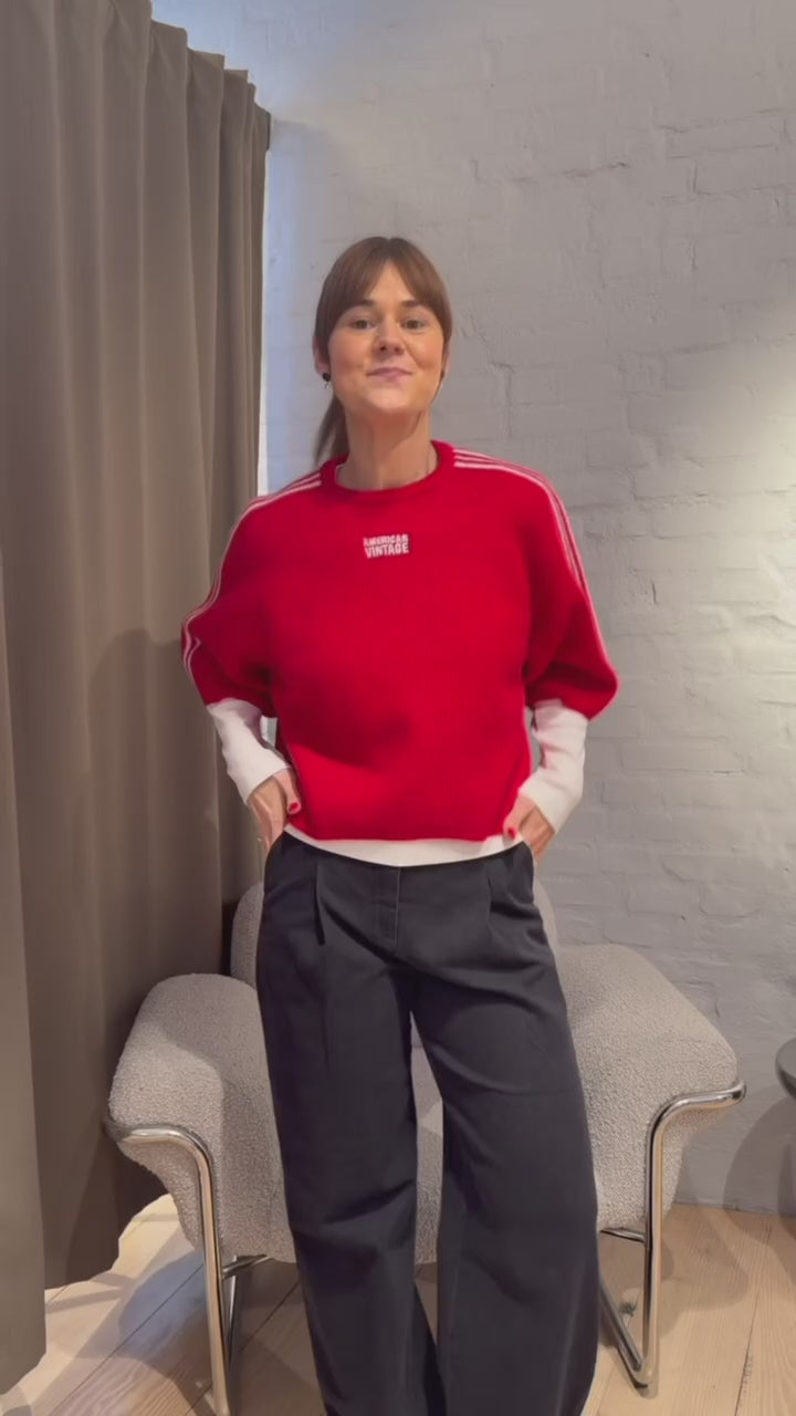 Denne retro-inspirerede striktrøje fra American Vintage kommer i en flot rød farve. Den er designet med et boxy fit, 3/4-ærmer med sporty striber og et diskret broderet logo på brystet.