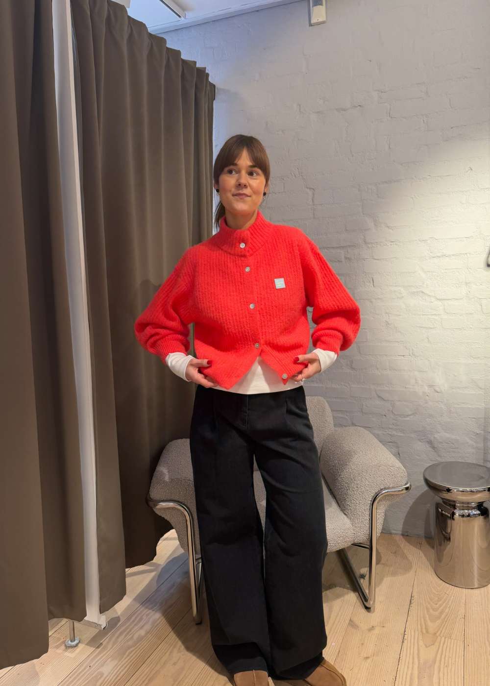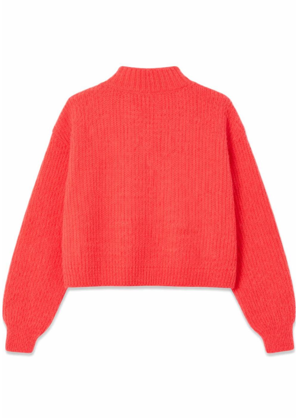 Opdag denne livlige cardigan fra American Vintage. Den iøjnefaldende fluorescerende farve, kombineret med en blød ribstrik og et moderne, kort design, giver et friskt pust til din garderobe.