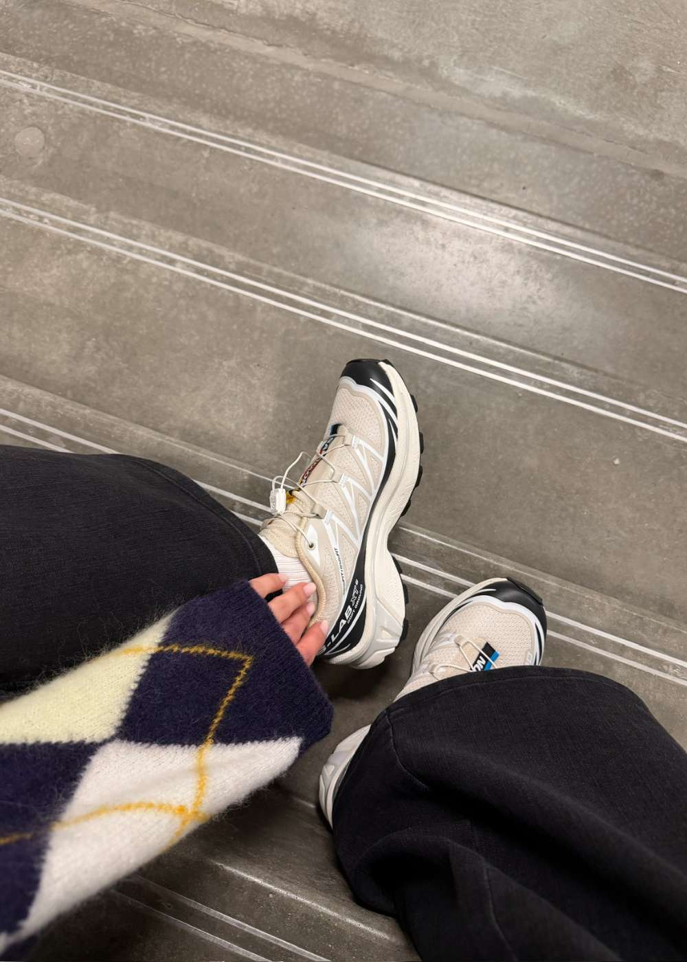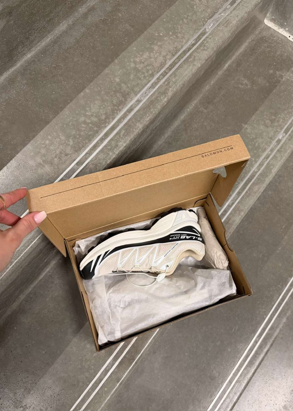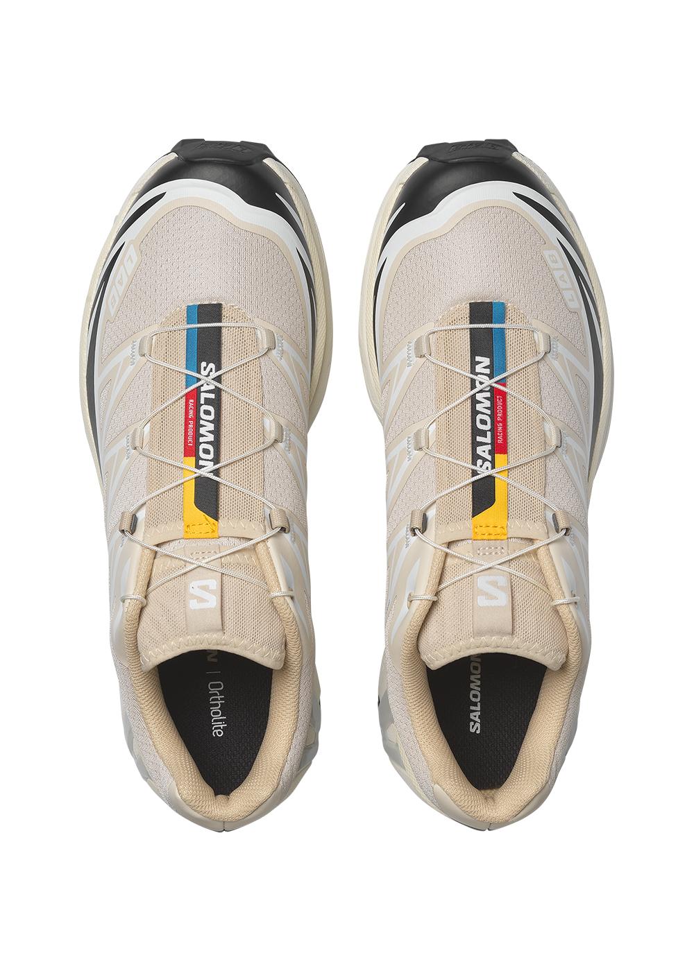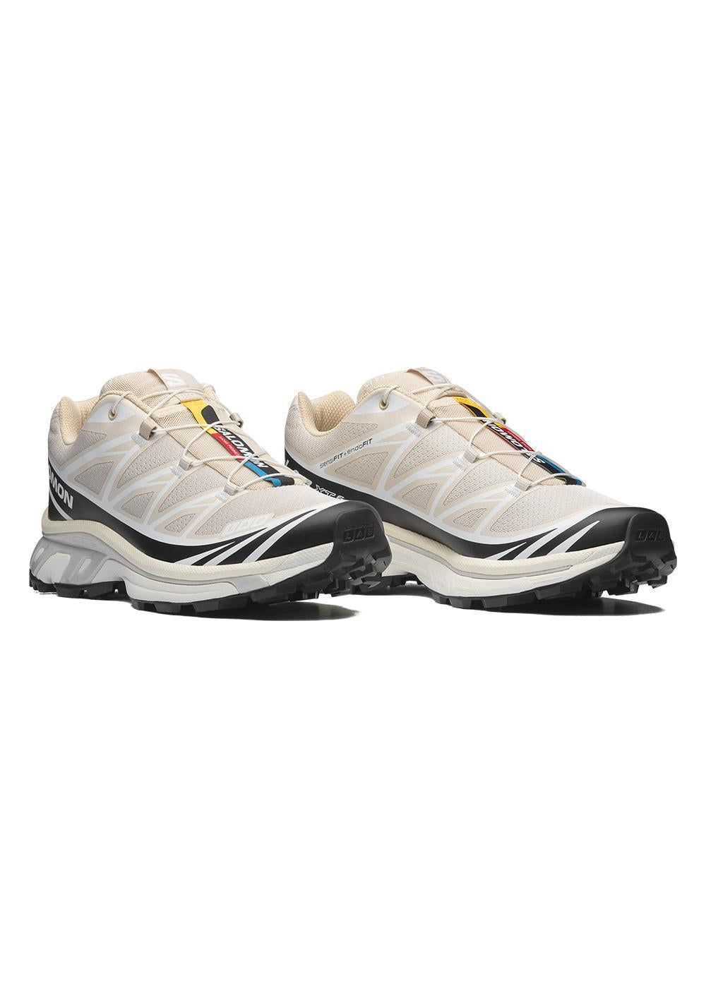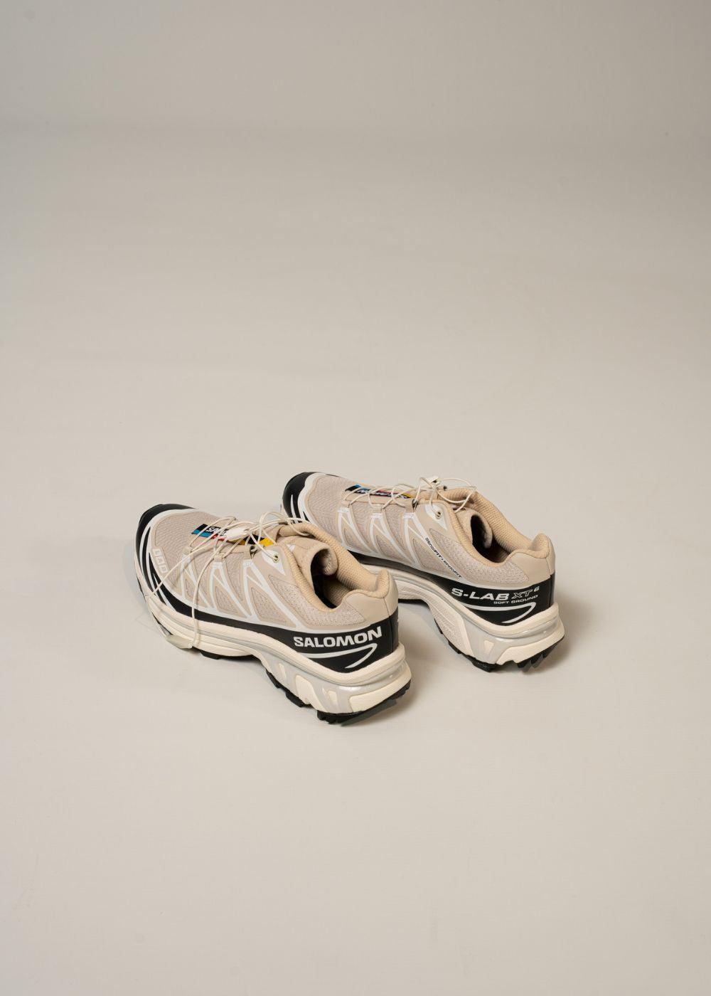 Salomon XT-6 er en ikonisk low-top sneaker i en stilren beige farve med sorte og hvide kontrastdetaljer. Det funktionelle design med Quicklace-system og markant logo skaber et moderne og sporty udtryk.