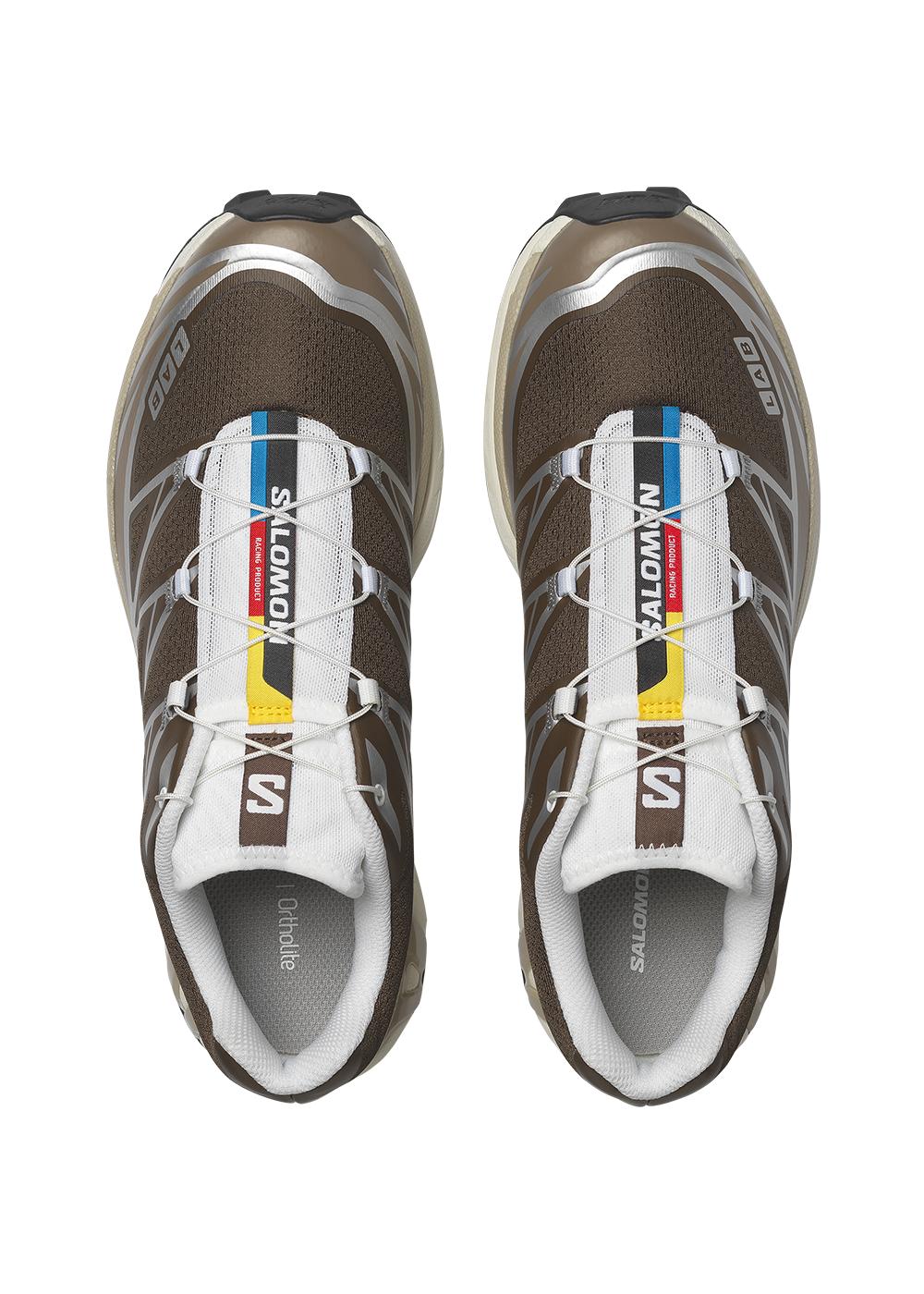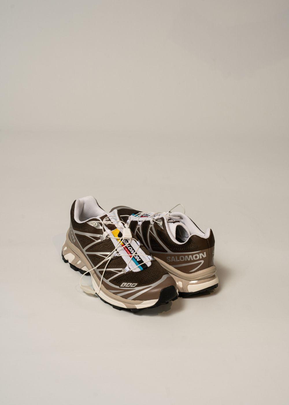 Salomon XT-6 er en teknisk sneaker i en dyb jordbrun farve med kontrastdetaljer i sølv. Det funktionelle design og det moderne udtryk gør den til et alsidigt valg til hverdagsbrug.
