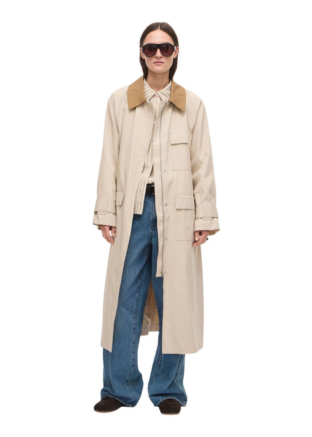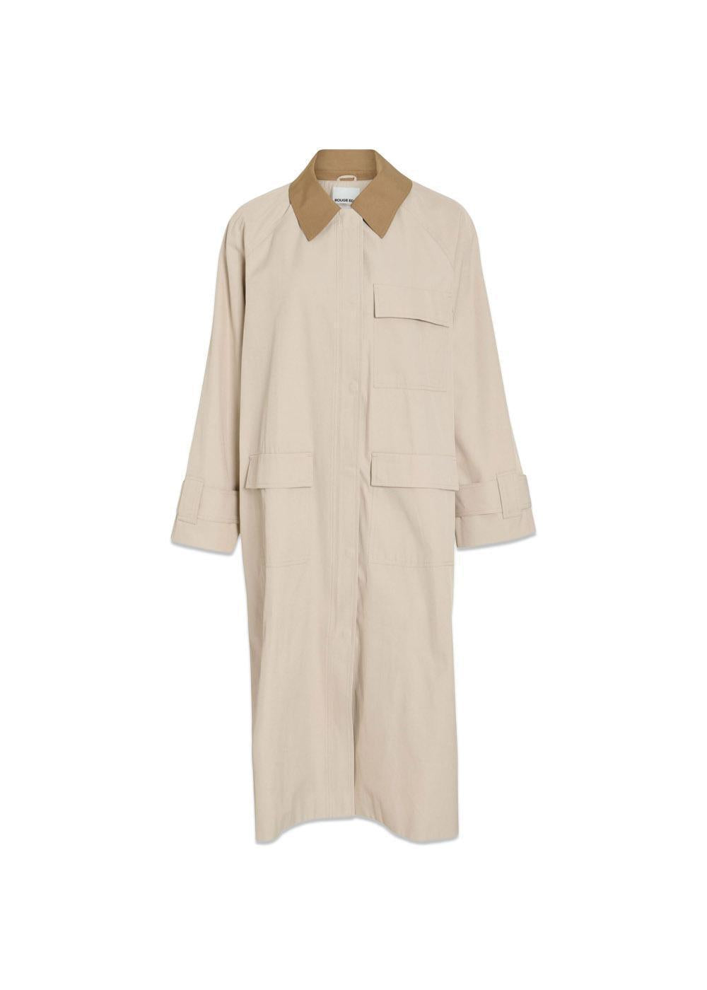 ROULIANNE er en klassisk overgangsfrakke med et oversize fit og et tidløst udtryk. Den lyse, beige farve og den kontrastfarvede krave giver et sofistikeret og moderne look, perfekt til hverdagsbrug.