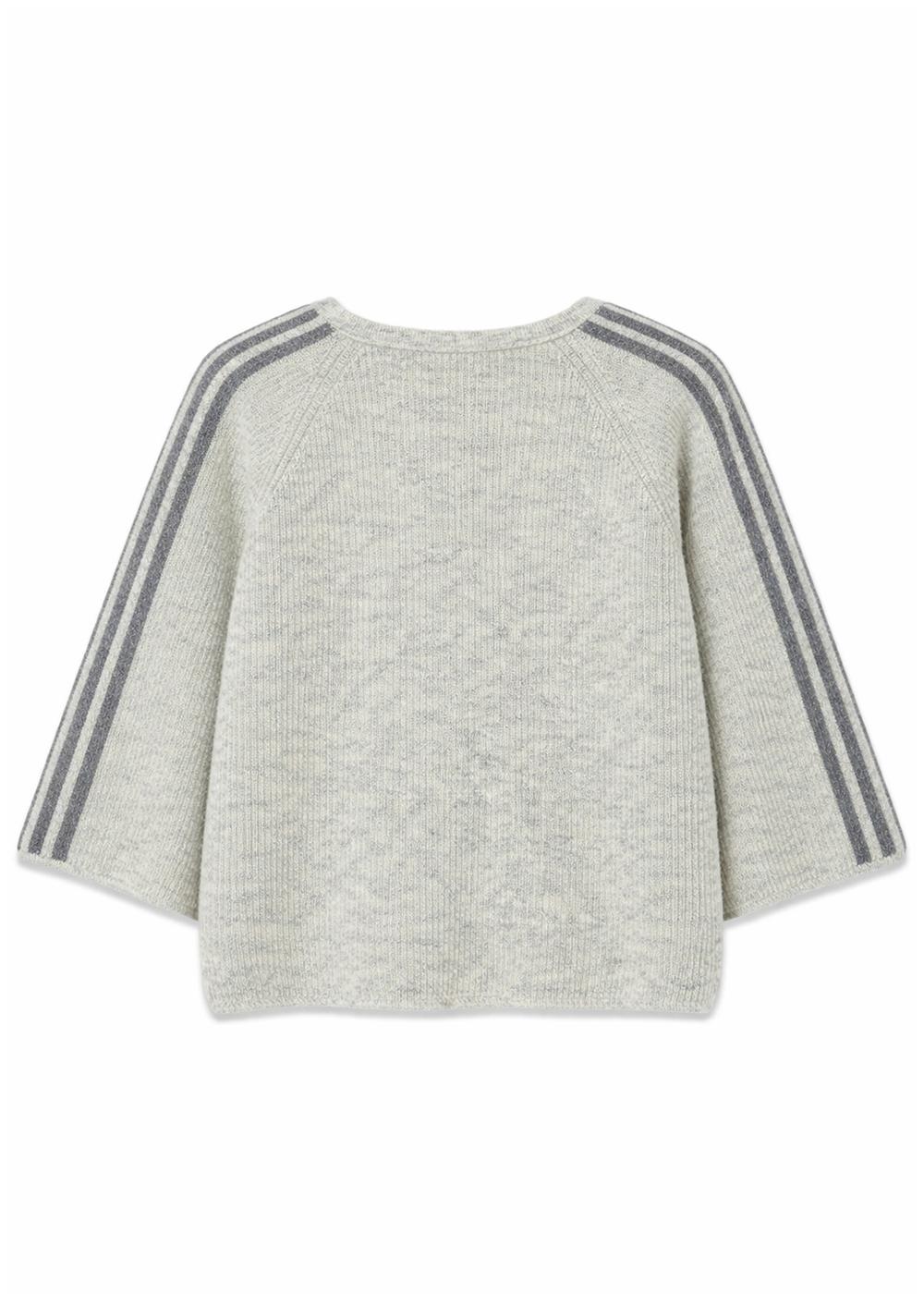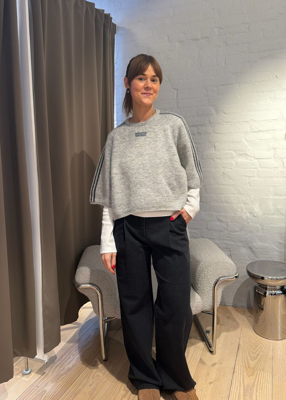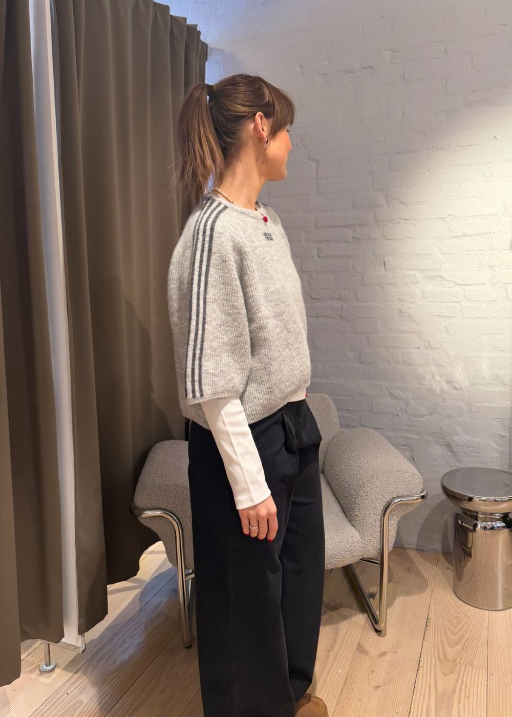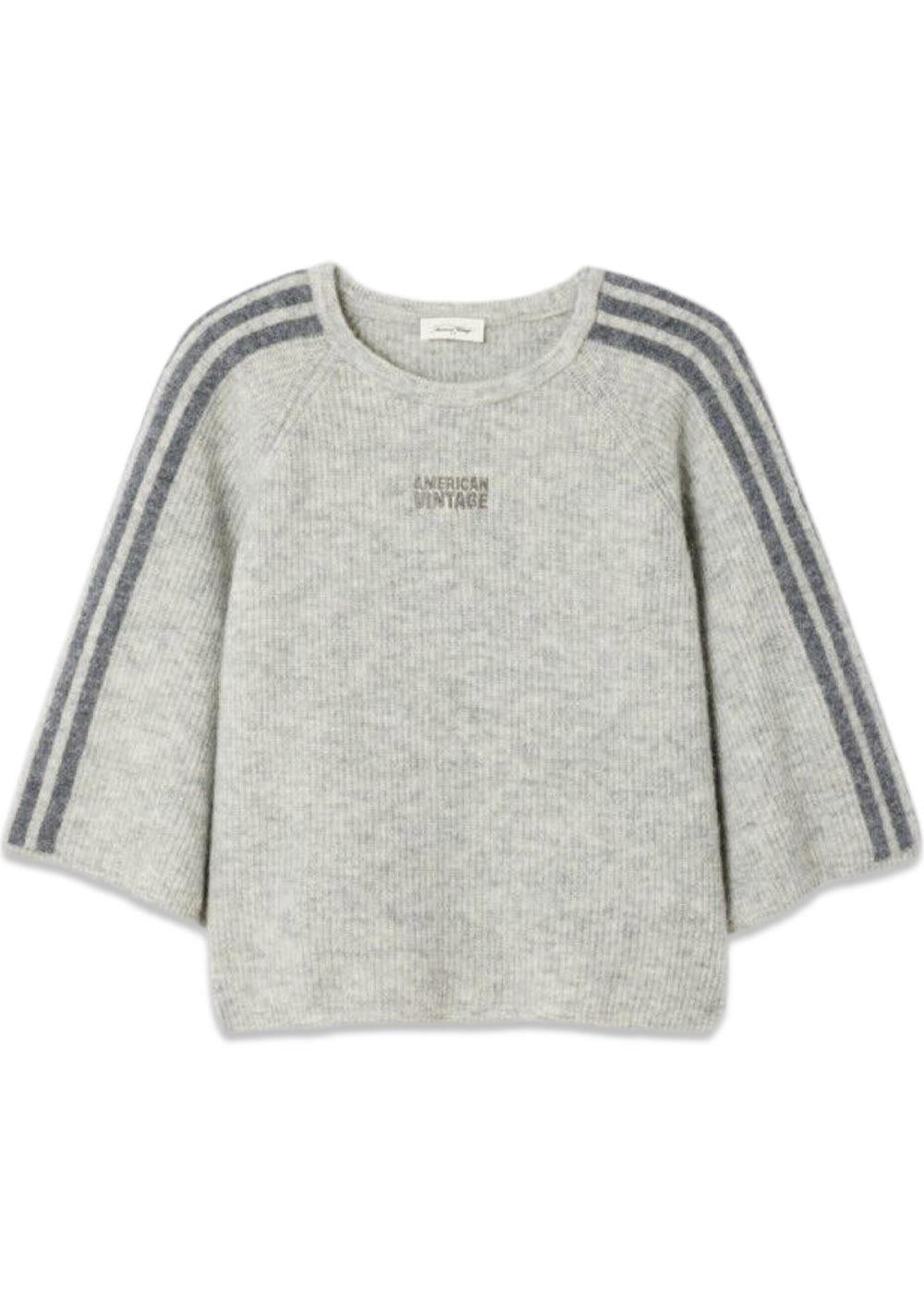 Oplev denne sporty, finstrikkede pullover fra American Vintage. Den gråmelerede farve med sorte striber på ærmerne giver et klassisk udtryk, mens det broderede logo og den cropped længde tilføjer et moderne touch.