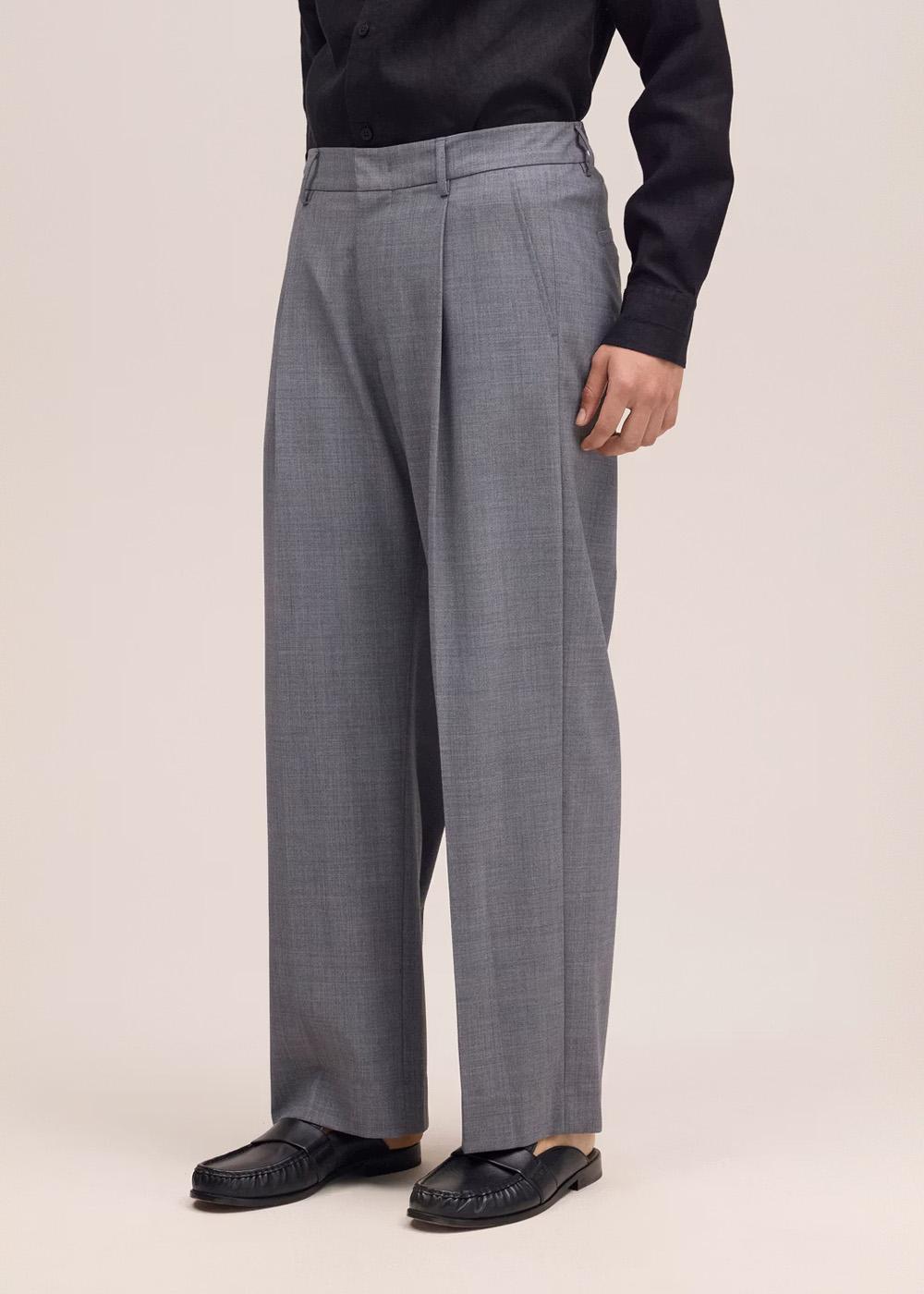 Relaxed trousers made from a washable wool blend with a drapey, fine handfeel. Features a straight leg and a hook and bar closure.