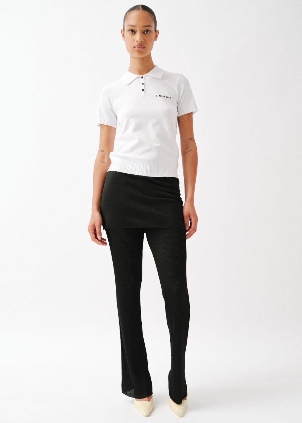 A.R.H. Polo er en kortærmet strikket polo i hvid med en tætsiddende pasform. Overdelen har klassisk krave, mørke kontrastknapper og broderet logo på brystet.