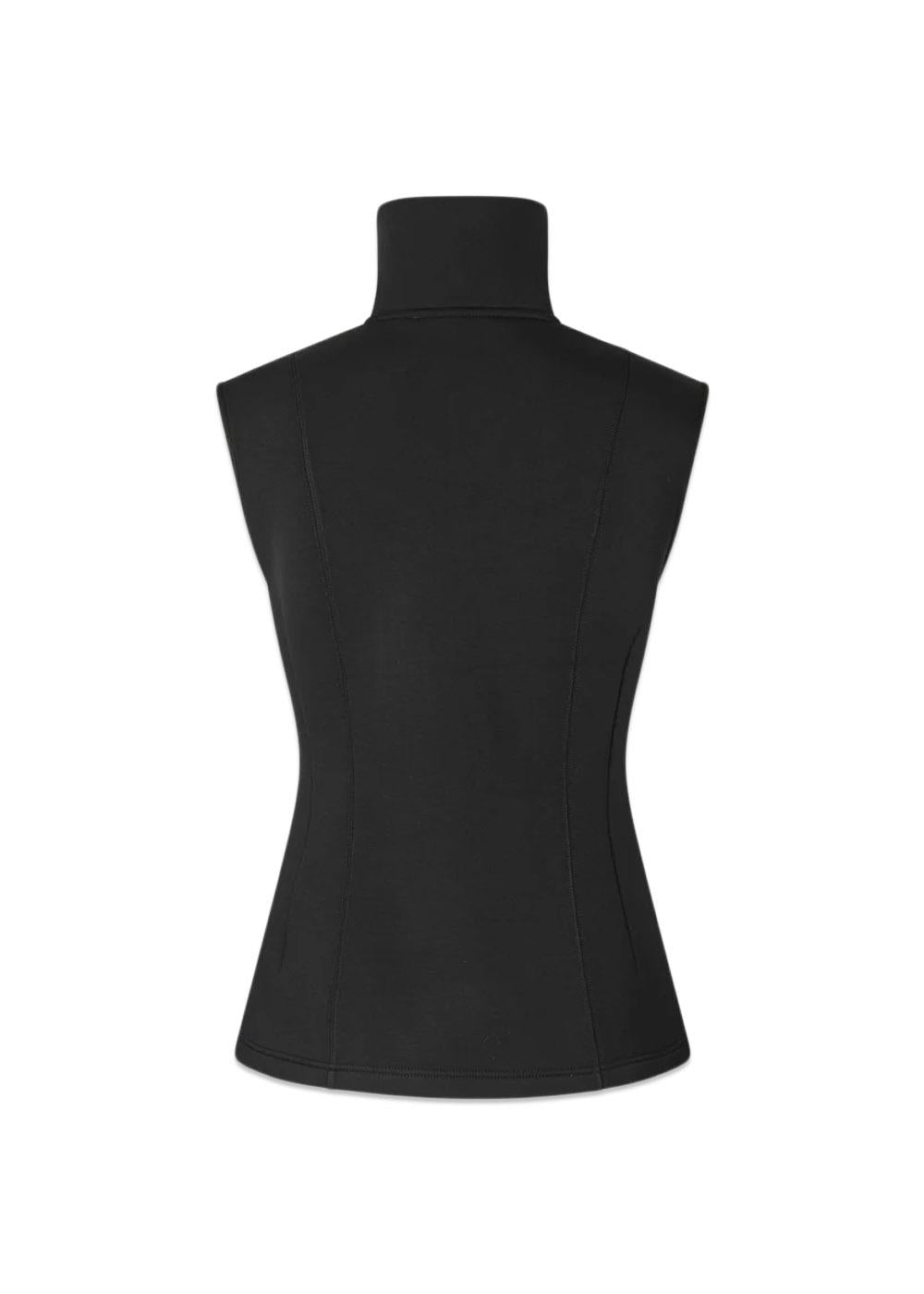 Baba zip vest er en sort overdel i et tætsiddende snit. Vesten har en høj hals, gennemgående lynlåslukning foran og markante snitlinjer, der giver et sporty og klassisk udtryk til hverdagsbrug.