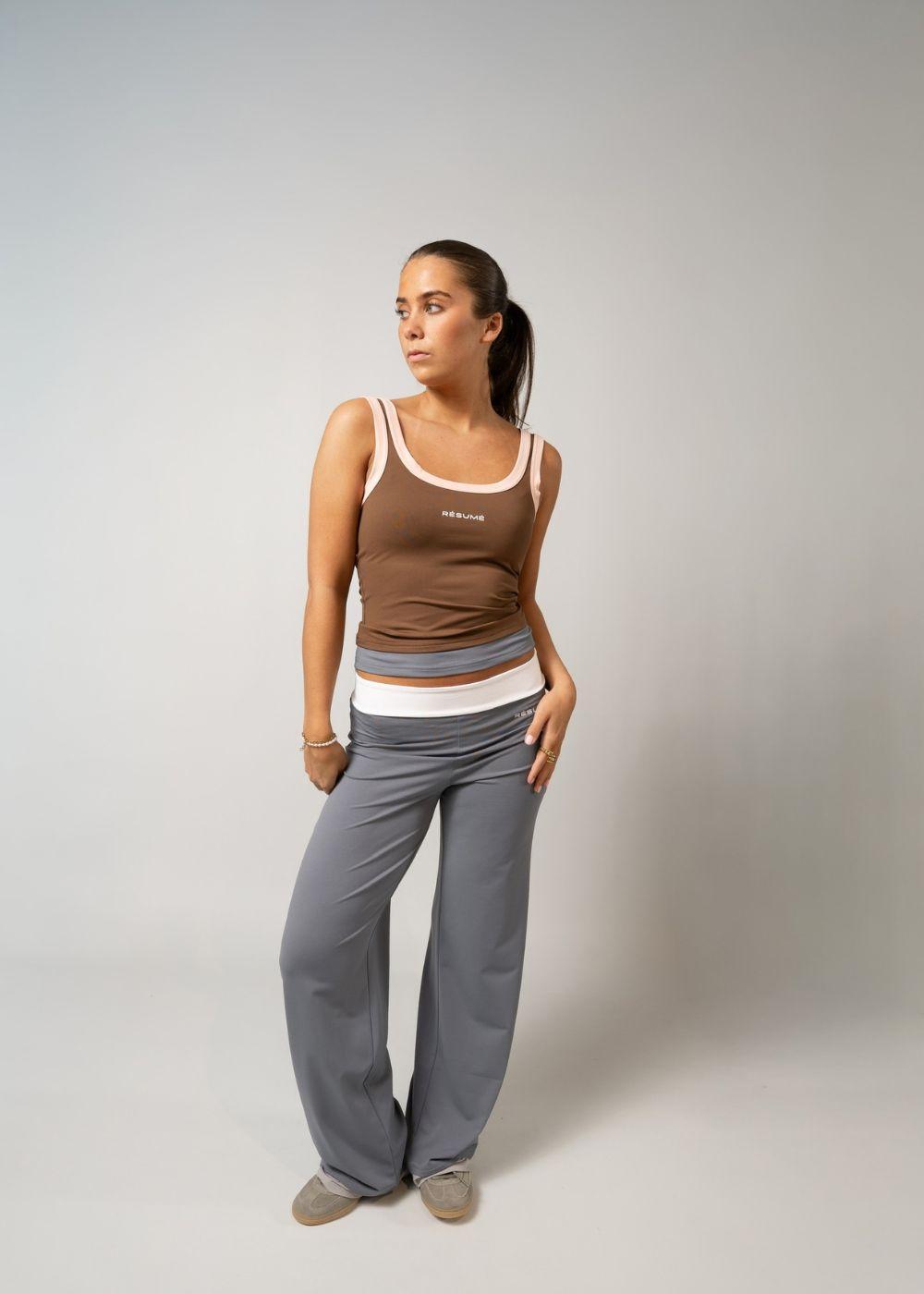AlexRS Top er en tætsiddende top i brun med kontrastfarvede detaljer i lyserød og blå. Toppen har et enkelt design med et diskret logo-print på brystet og et Y2K-inspireret udtryk.