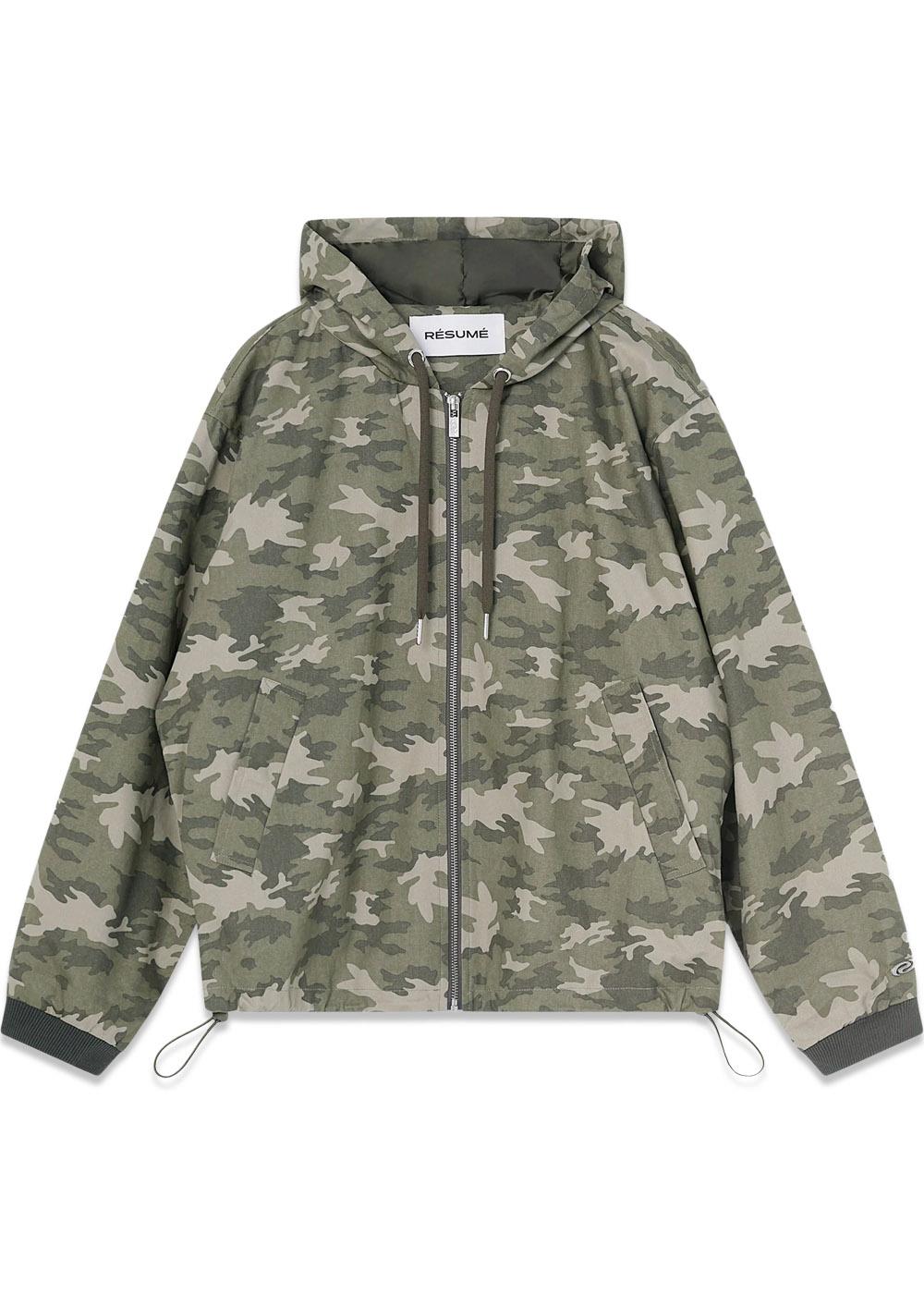 MaxRS Jacket er en kort, camouflage-mønstret windbreaker i bomuld med en boxy pasform. Jakken har høj hals, hætte med snøre og gennemgående lynlås, hvilket giver et sporty streetwear-udtryk til hverdagsbrug.